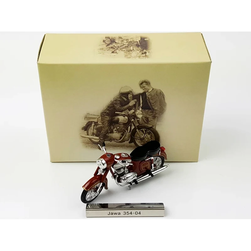 Seize the opportunity to add this vintage JAWA motorcycle replica to your collection today. Its detailed craftsmanship, classic color scheme, and nostalgic style make it an exceptional display piece. Whether you're a seasoned collector or an enthusiast, this model brings authentic charm and timeless appeal. Imagine showcasing it in your living space or collection shelf, appreciating the fine details and craftsmanship. Purchase now and elevate your display with a piece that truly captures the essence of classic motorcycle design. This model promises both aesthetic delight and collector’s satisfaction.