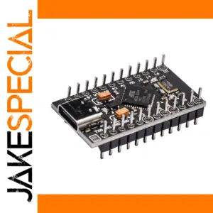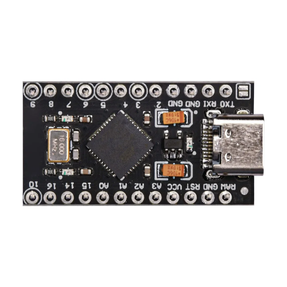 Discover the power of this compact ATmega32U4 microcontroller module, designed to seamlessly integrate into your projects. Its minimalist black PCB with shiny silver pin headers offers a modern, professional look that complements any setup. The Type-C mini USB port provides quick, reliable connectivity, making programming and communication effortless. Featuring a 16MHz clock speed, 32KB flash memory, 2.5KB RAM, and 1KB EEPROM, this module packs impressive performance into a small form factor. It supports a 9-channel 10-bit ADC, 5 PWM pins, 12 digital I/O ports, and hardware serial communication via RX and TX. Its onboard voltage regulator ensures stable operation with input voltages of 6-12V DC, making it a versatile choice for your electronics projects.