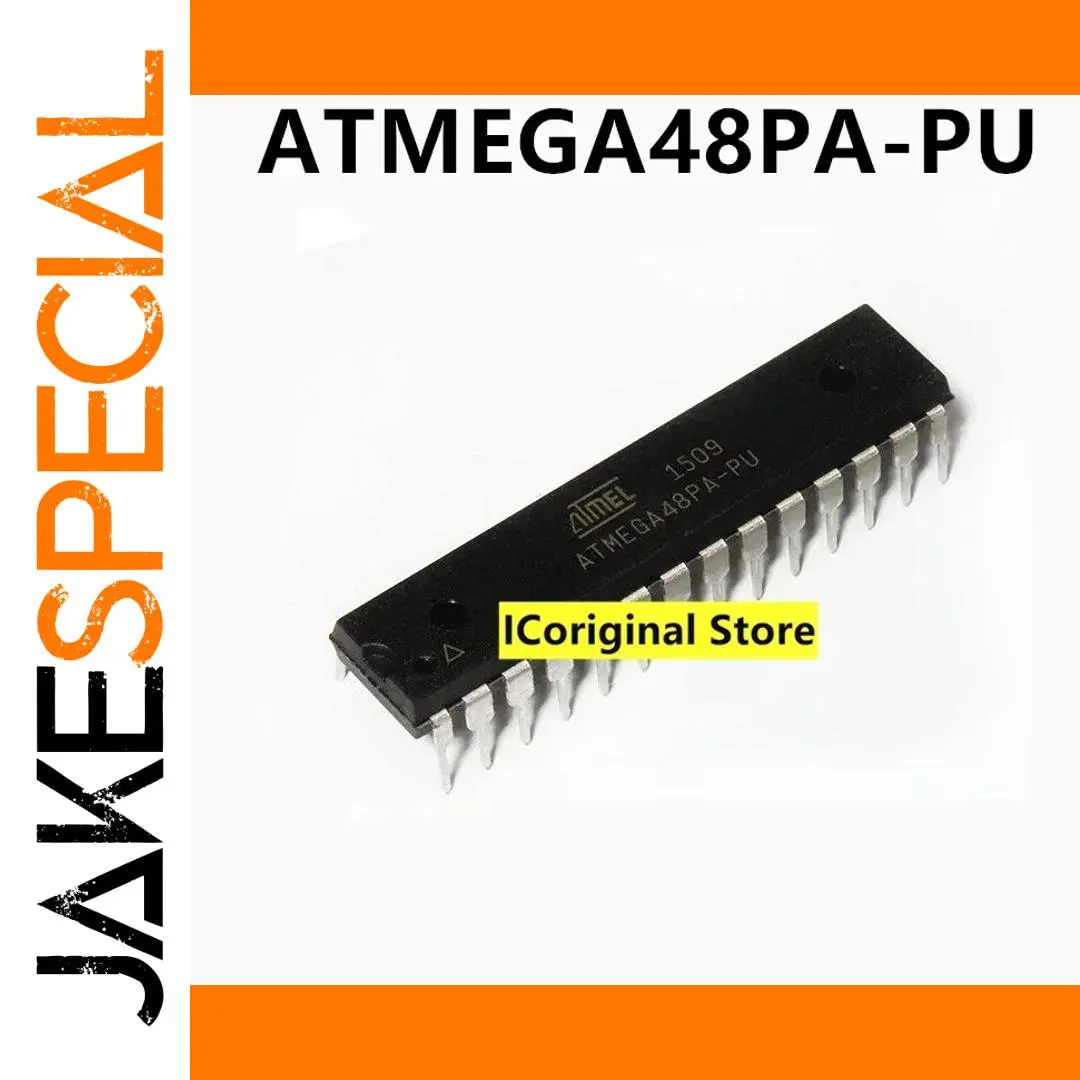 Experience reliable performance with the original ATMEGA48PA-PU 8-bit microcontroller, featuring a DIP-28 package with 28 pins evenly spaced along two sides for easy installation. This high-quality device is specifically designed for voltage regulation and embedded control applications, making it ideal for use in devices like TVs and other electronics. Its black plastic body is marked with crisp, light-colored text for easy identification, and it features a prominent yellow label for quick recognition. Fully tested for quality assurance, this microcontroller ensures stability and durability in your projects, offering a trusted solution for your electronic control needs.