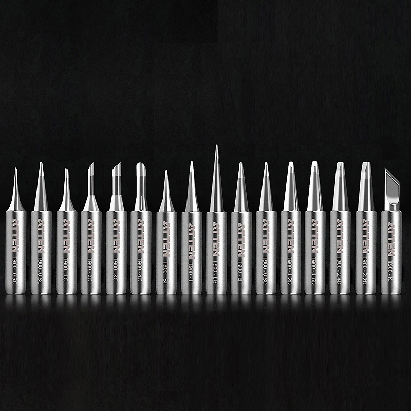 This high-quality soldering iron tip from the 900M-T series, crafted from durable aluminum-copper alloy, is designed for lead-free applications such as BGA welding and compatible with the 936 soldering station. Available in a variety of models including T900-0.5C, T900-0.8C, T900-0.8D, T900-1.2D, T900-1.6D, T900-1.6K, T900-1C, T900-2.4D, T900-2C, T900-3.2D, T900-3C, T900-4C, T900-B, T900-I, T900-IS, T900-K, T900-LB, T900-SB, T900-SI, and T900-SK, these tips feature a variety of shapes—ranging from slender conical points to broad flat chisel edges—perfect for precise soldering and electronics repair. Their sleek, metallic finish and refined branding inscriptions emphasize their professional grade and high durability, making them an essential choice for dedicated DIY electronics enthusiasts seeking dependable performance.