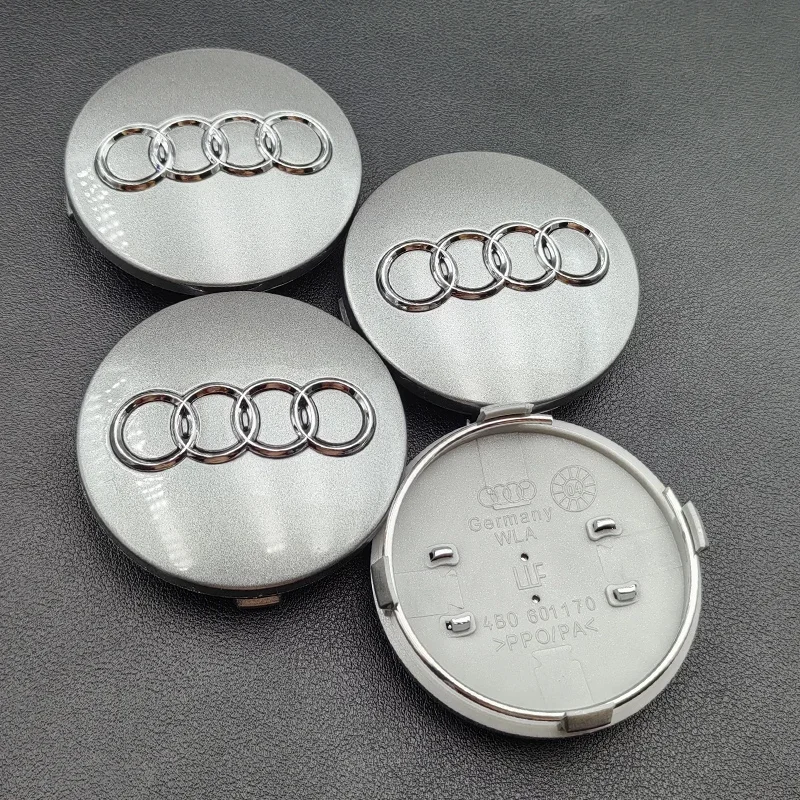 Enhance your Audi with this set of four waterproof wheel hub center covers, available in black or grey, with diameters of 60mm, 61mm, 68mm, and 69mm (±1mm). Crafted from durable ABS and aluminum, these precision-fitted caps feature the iconic four-ring Audi logo, providing a sleek, polished look to models including A3, A4, A5, A6, A7, A8, Q5, and Q6. Designed for easy installation and long-lasting performance, they ensure your vehicle maintains a refined appearance while protecting wheel hubs from dirt and moisture. Perfect for upgrading or replacing OEM parts and adding a customized touch to your car.
