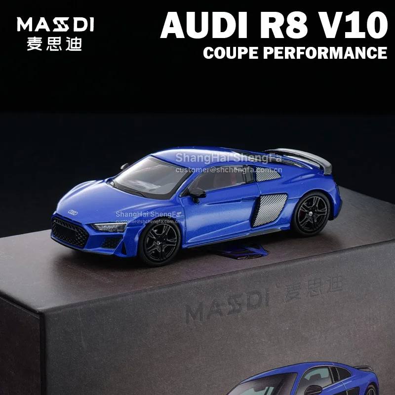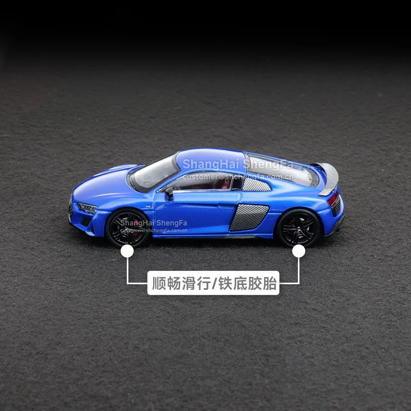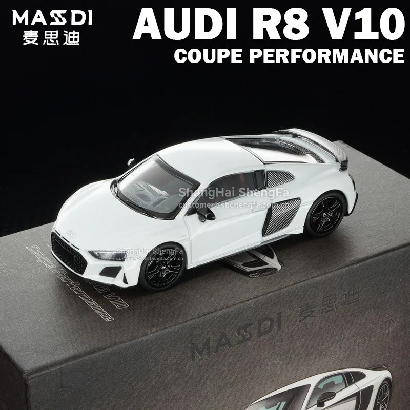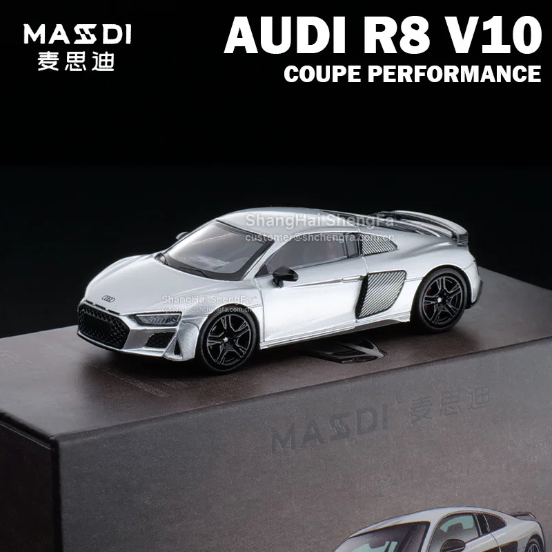 - Technical specifications include precise scale, high-shine finish, and faithfully reproduced proportions of the actual Audi R8 V10 Performance Edition.