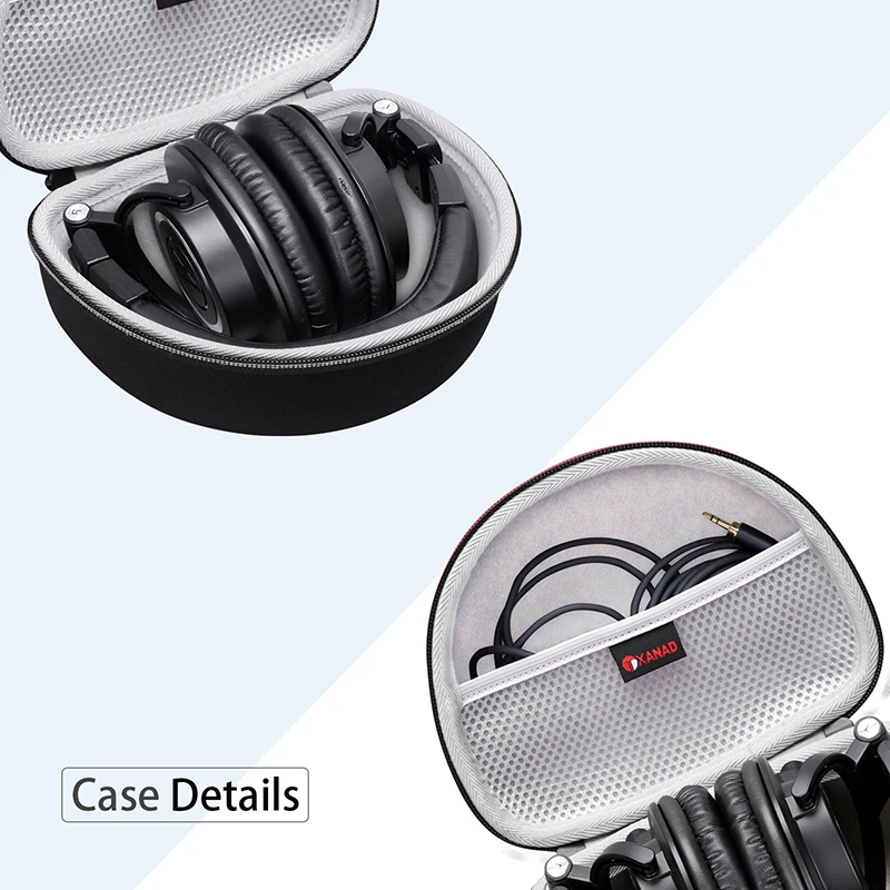 Imagine effortlessly transporting your Audio-Technica headphones with confidence and style. This sleek, semi-rigid case provides the perfect blend of protection and sophistication for your M20X, M20xBT, M30x, M40x, M50X, M50xBT2, M60X, or M70X models. Its textured black exterior offers a modern, professional look, while the soft gray interior lining adds elegance. Crafted from high-quality EVA material, it’s shockproof, dustproof, and waterproof, ensuring your headphones are safe from impacts, splashes, and everyday wear. The integrated handle makes carrying a breeze, and the mesh pocket inside keeps cables and accessories organized. Elevate your audio experience by choosing this durable, stylish, and functional case designed for your valuable headphones.