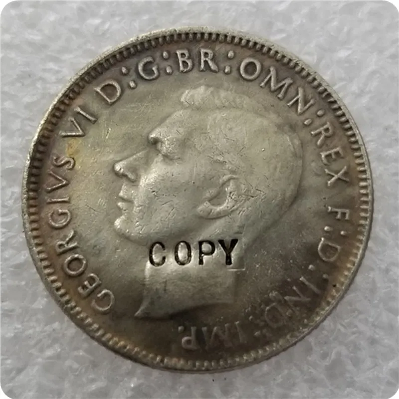 Presenting the Australian 1937 Shilling Replica Coin, a stunning addition to any coin collection. This meticulously crafted replica showcases a metallic silver appearance with intricate details, including the word “AUSTRALIA,” the distinctive ram’s head design, and the year “1937” inscribed prominently. Rest assured, this is a reproduction, clearly marked with “COPY,” ensuring you are aware that it is not an original coin. Made with high-quality alloys, it captures the essence of the historic design without containing precious metals. Enhance your collection with this beautiful replica and celebrate Australia’s numismatic heritage today!