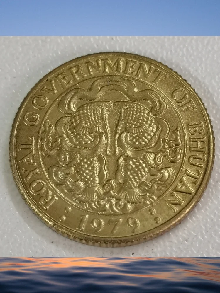 - Regional feature with inscriptions “BHUTAN 25 CHERTUM” encircling the emblem, reflecting historical currency design from the region during the specified era.