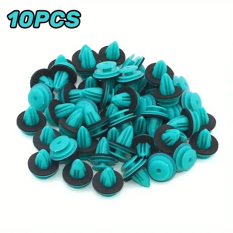Experience a seamless upgrade to your vehicle's interior with this set of durable plastic auto door panel clips. Designed with precision and strength, these clips feature a sleek green finish that adds a touch of vibrancy to your repair or assembly. Their innovative design includes a broad, rounded head with an integrated sealing ring, ensuring a tight, secure fit and effective sealing. The tapered bodies and ribbed tips make installation effortless, providing an exact fit for your car’s interior panels and bumper components. Whether you're replacing worn-out clips or completing a detailed car restoration, this set guarantees reliability and ease of use. Trust these clips to securely hold your vehicle parts in place long-term, so you can focus on your journey without worry.