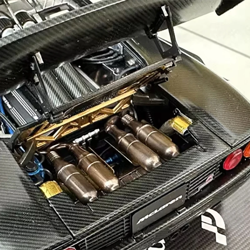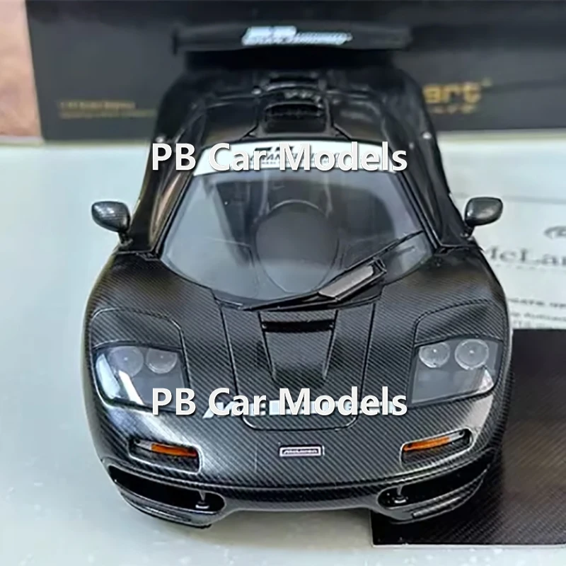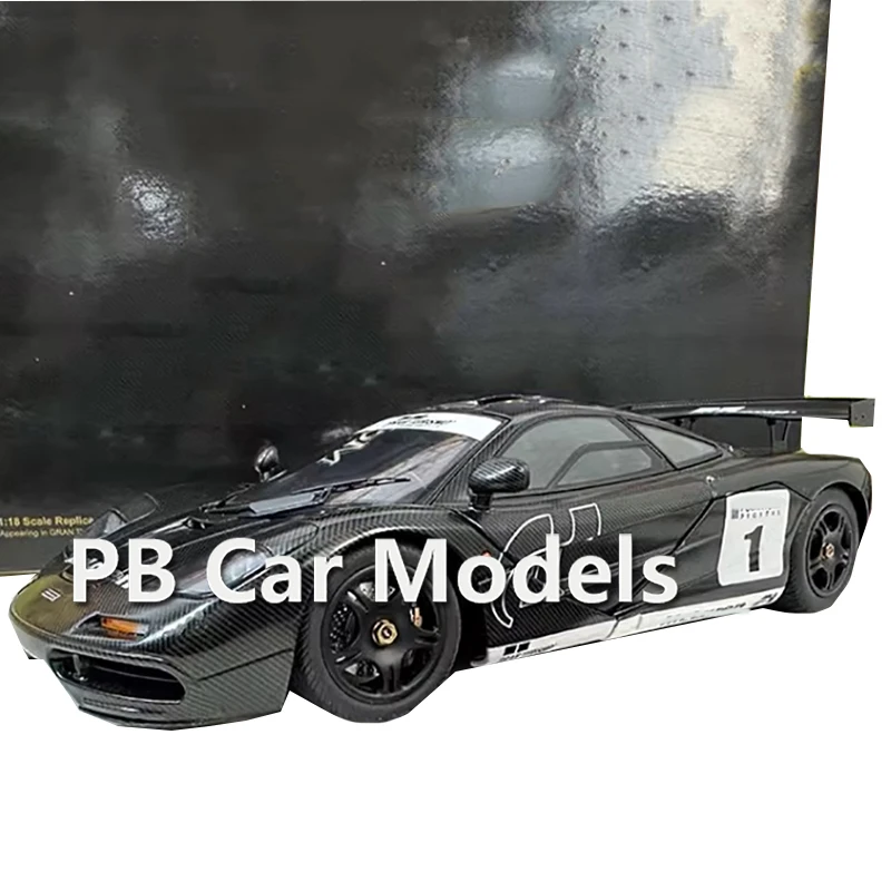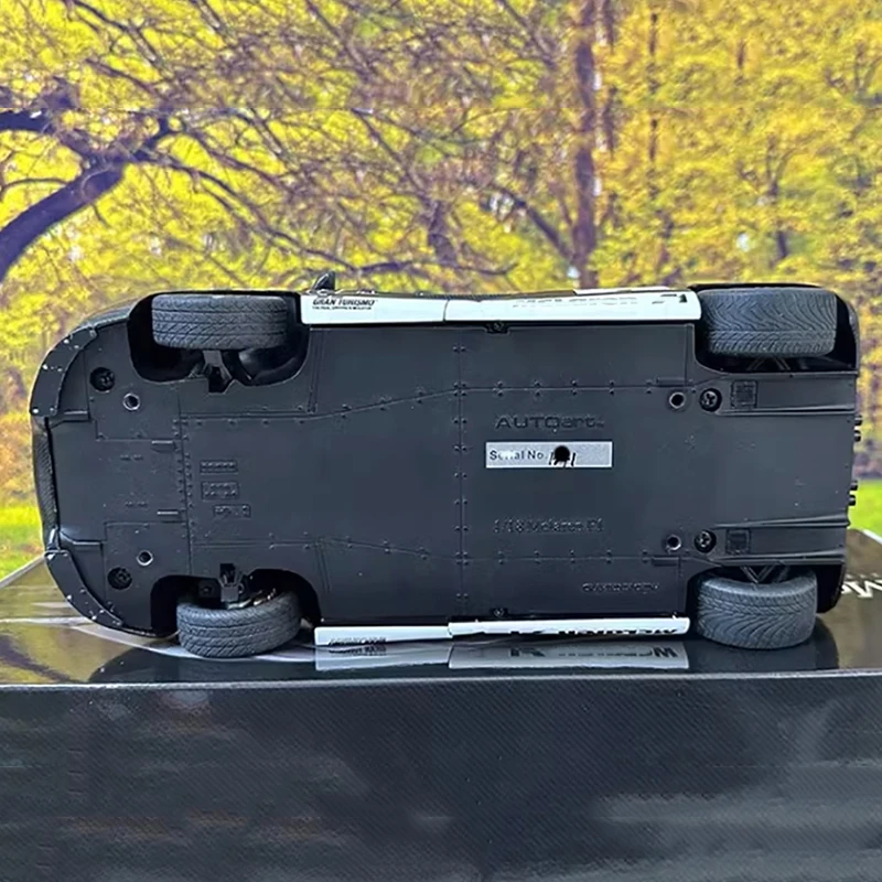 This high-detail 1:18 scale diecast alloy model captures the sleek aerodynamic design of a racing car with a glossy black finish and textured carbon fiber accents on the side mirrors and wheels. Measuring 25 cm in length, 11 cm in width, and 7 cm in height, it features functional doors, front and rear lids, a side luggage compartment, and front wheel steering linked to the interior steering wheel for realistic display. Made from alloy and plastic, this static collectible is perfect for enthusiasts seeking a precise, visually striking model to showcase their passion for high-performance racing vehicles. Suitable for ages 14 and above.