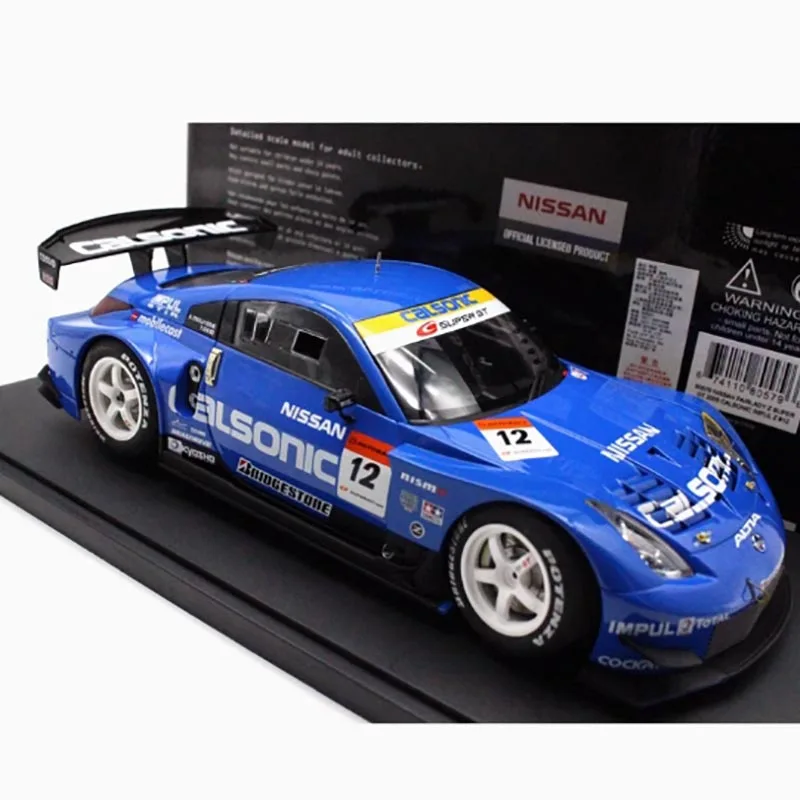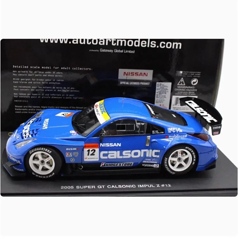 The AUTOart 1:18 scale diecast racing model car measures approximately 27 cm in length, featuring a stunning glossy blue finish complemented by white and yellow accents. Detailed decals adorn the model, including the iconic “Calsonic” logo and the number “12,” enhancing its authenticity. Crafted from a blend of metal and plastic, it boasts realistic race-style wheels and rubber-like tires. This static display model cannot open its doors and is designed purely for collectors and decorative purposes. A perfect addition to your collection, it combines durability with striking aesthetics, making it an ideal gift for enthusiasts.