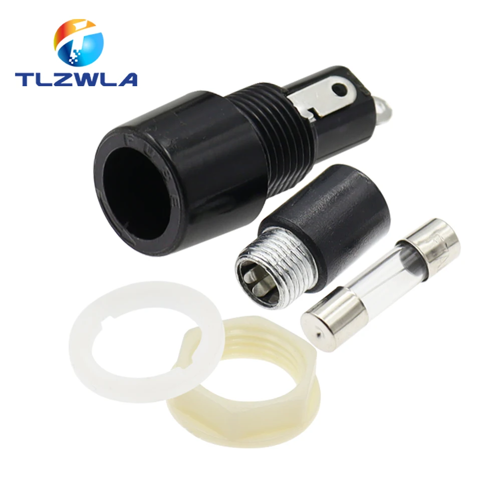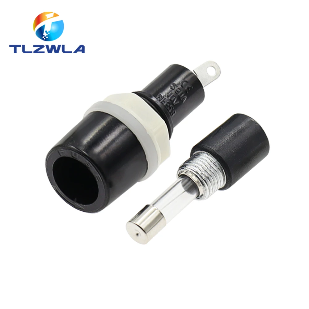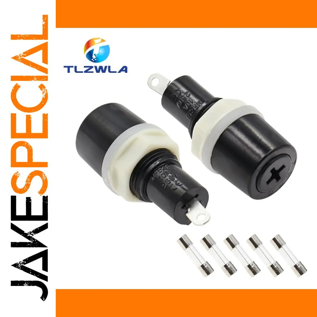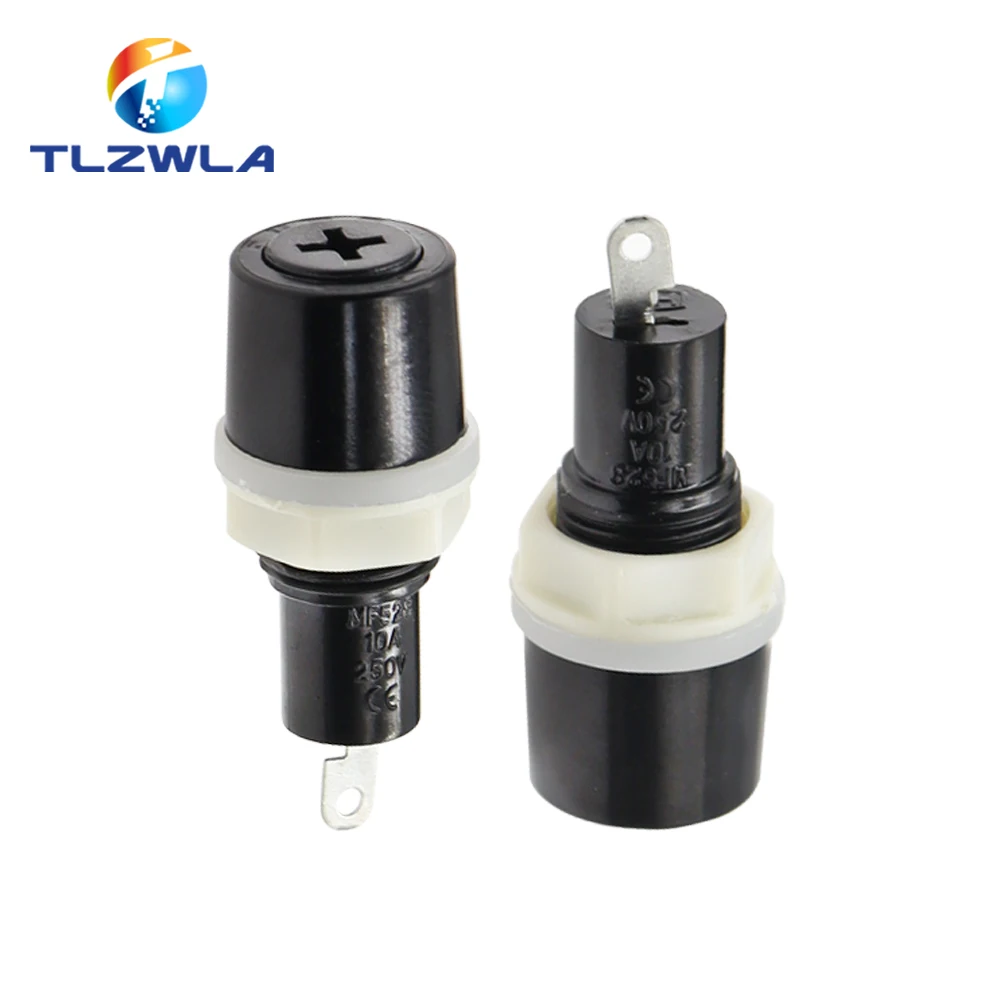 Enhance your automotive electrical system with this set of five copper fuse holders measuring 5x20mm, featuring a durable flat tube design with white insulating rings and black crosshead screw caps for secure installation. These sturdy fuse holders support up to 250V and 10A, with a low breaking capacity, ensuring reliable protection. Equipped with a rotating nut for easy setup, they include metal terminal tabs for efficient electrical connection. Compatible with a wide range of fuse ratings from 0.1A to 30A, they meet IEC safety standards, CE, and RoHS certifications, making them a dependable choice for maintaining and safeguarding your vehicle’s electrical components.