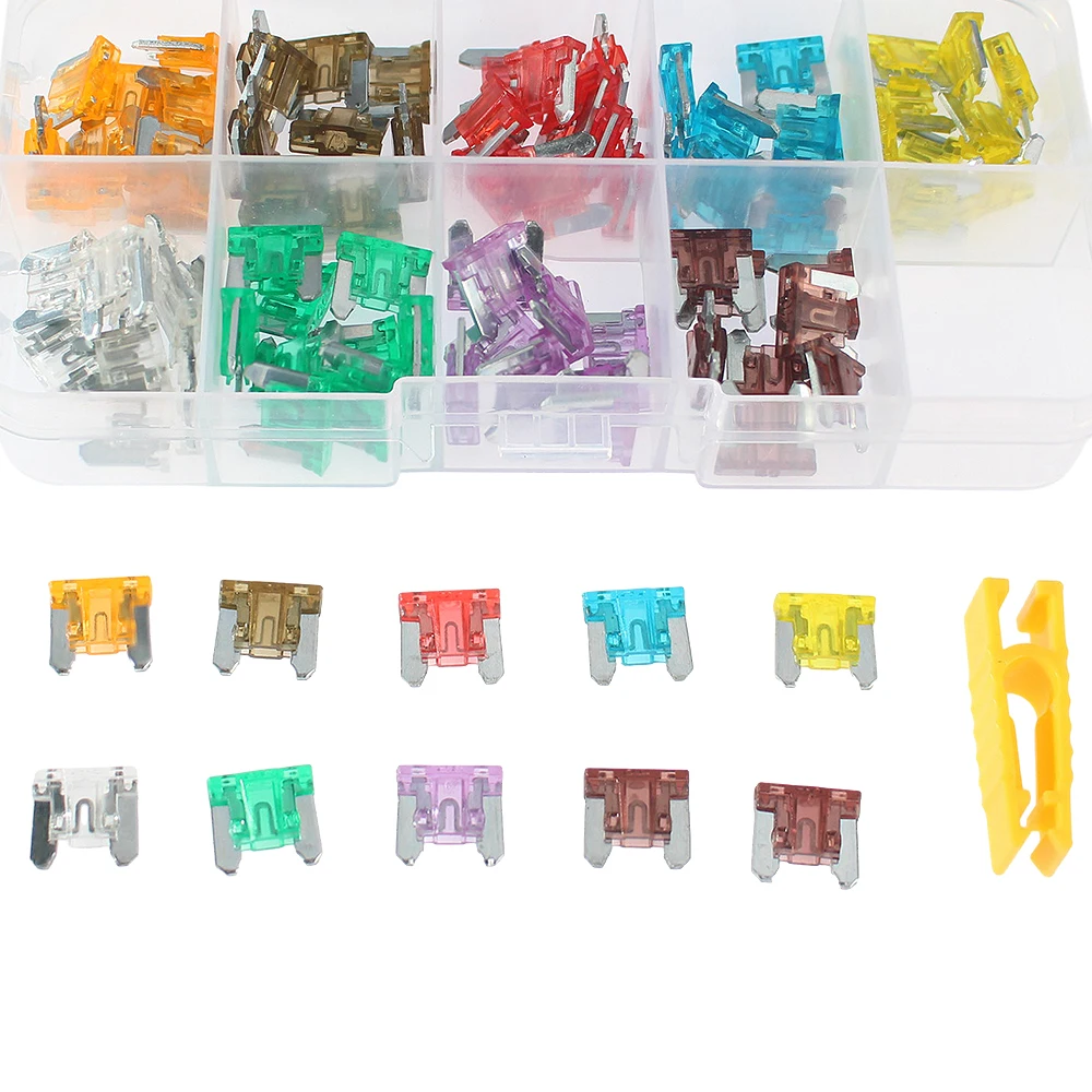 Imagine having all the essential fuses you need for your vehicle’s electrical system neatly organized and ready for any repair or upgrade. This comprehensive 90-piece fuse kit offers a practical solution for protecting your automotive lights, audio systems, headlights, taillights, stoplights, and electronic devices. Its transparent plastic case showcases an array of brightly colored, rectangular fuses—each color indicating a specific amperage rating—making identification quick and effortless. The high-quality impact-resistant casing ensures durability, while the see-through window allows easy inspection of each fuse. With this kit, you'll gain confidence knowing your vehicle’s circuits are safeguarded with reliable, professional-grade components designed for optimal performance and safety.