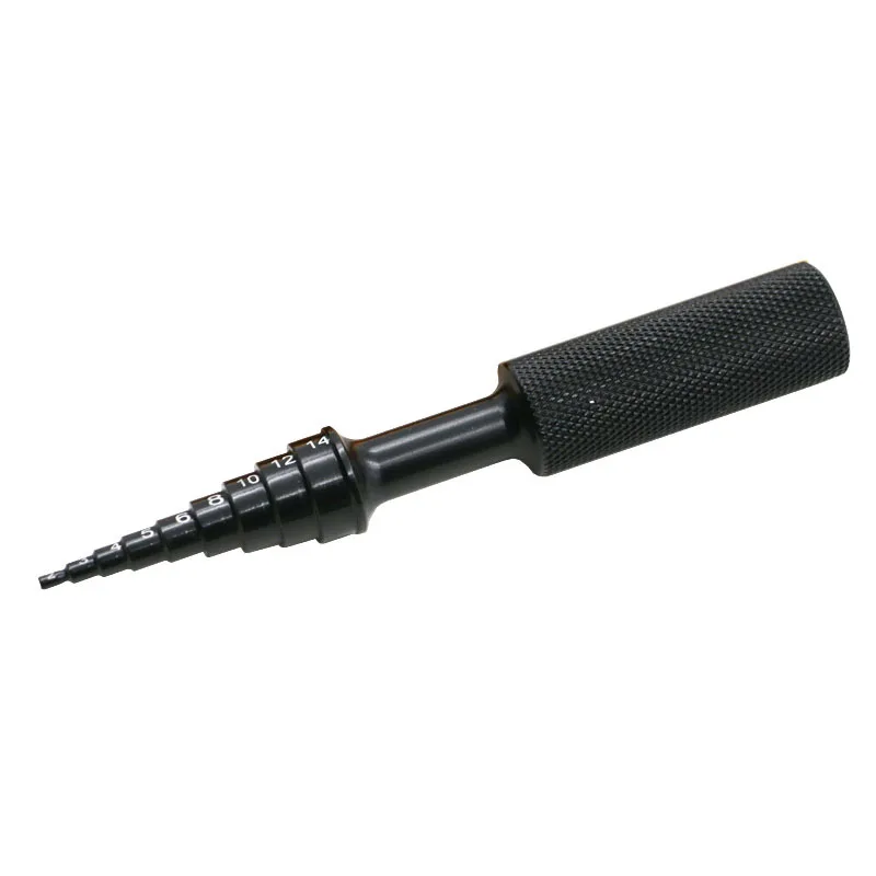 Experience effortless bearing removal with this high-quality car bearing disassembler set. Crafted from durable aluminum alloy, it features a sleek, metallic finish accented with vibrant colors like gold, red, blue, black, and silver. The textured, knurled handle ensures a firm grip, giving you complete control during disassembly. The removable, conical driver is segmented into sizes from 5mm to 14mm, clearly marked for easy identification. Included are five interchangeable adapters, each color-coded and marked with size measurements, making your repair work faster and more precise. Whether you're a professional mechanic or a dedicated DIYer, this set provides reliable, versatile tools for removing bearings efficiently and safely, ensuring your vehicle runs smoothly again in no time.