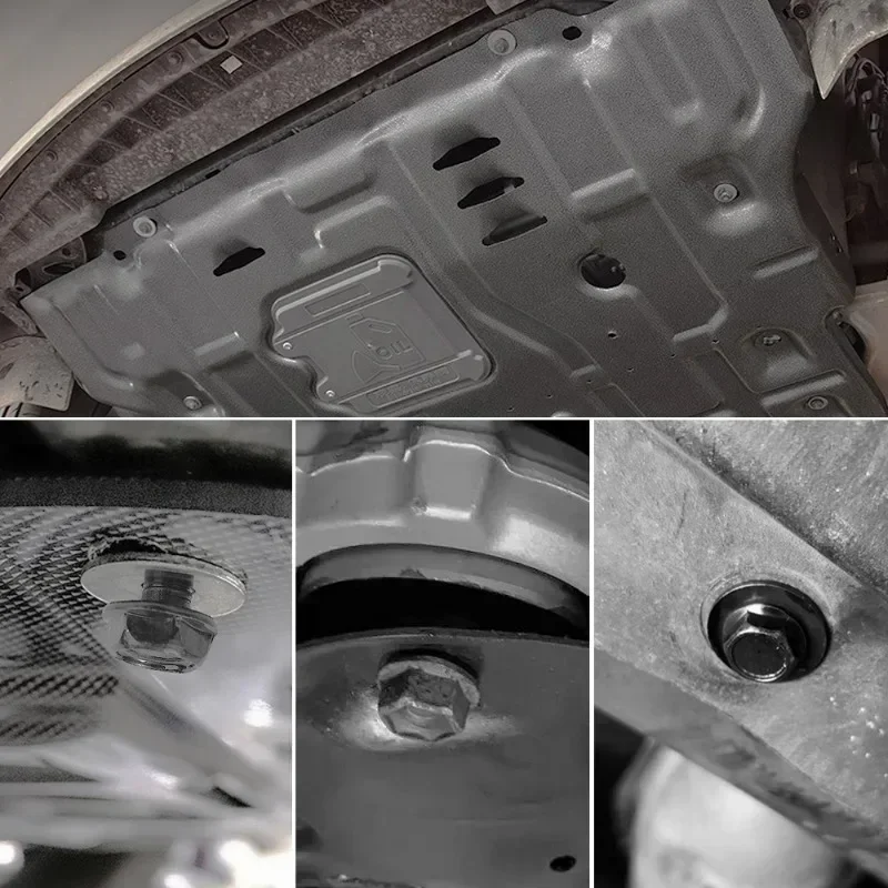 Secure your automotive panels with this set of 10 black steel self-tapping U-shaped clips and screws, designed for durability and corrosion resistance. Each U-shaped clip measures approximately 25.5 x 14 mm with a 6 mm hole suitable for M4 and M5 screws, and the screws are about 21.6 mm long with a polished, rounded head. Perfect for fastening engine covers, splash shields, bumpers, and fender liners on cars, motorcycles, and trucks, these fasteners provide a reliable, rust-proof solution with a sleek, functional design that ensures a firm hold and easy installation.