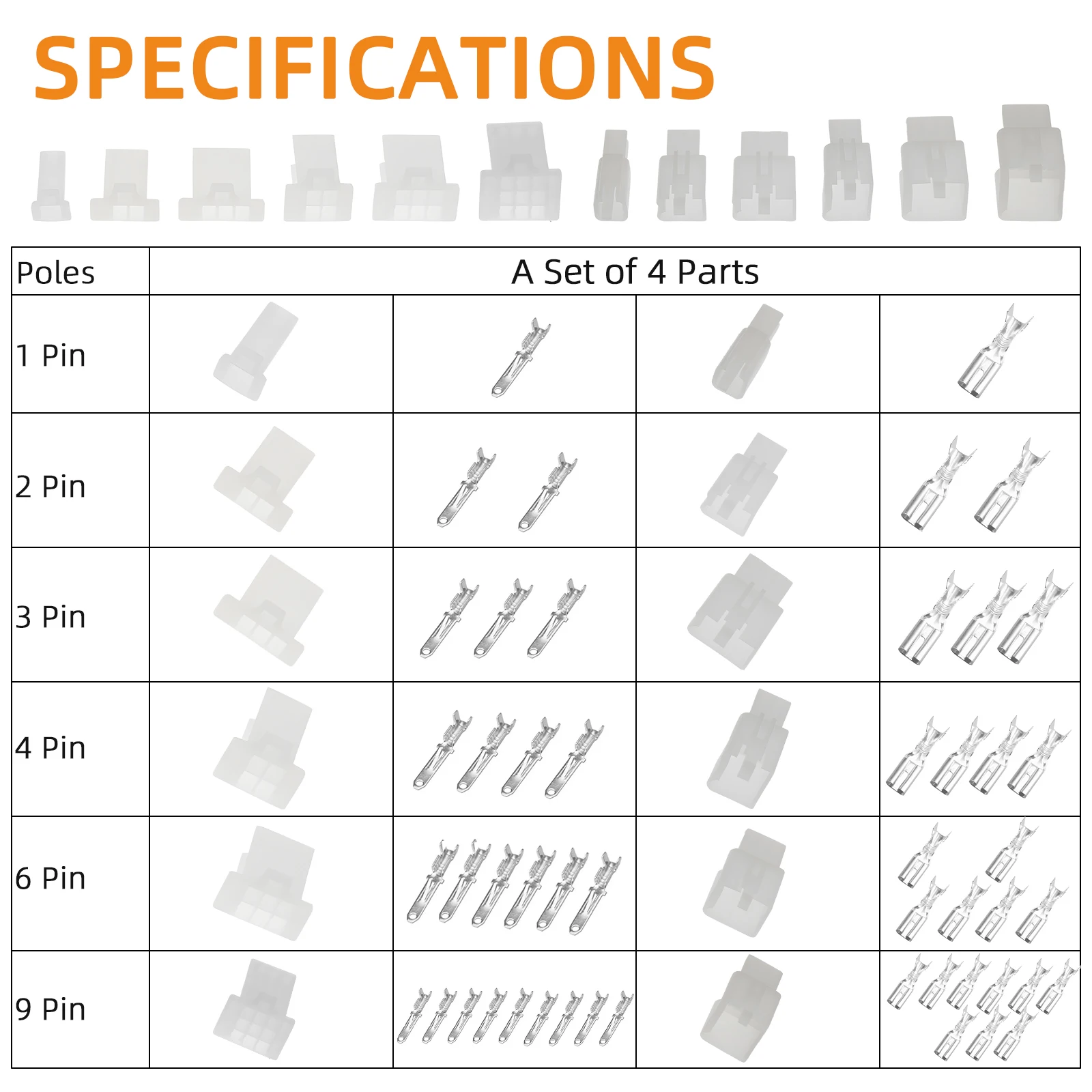 - Variety of pin configurations (1-pin, 2-pin, 3-pin, 4-pin, 6-pin, and 9-pin) to suit diverse automotive and marine wiring applications accordingly.
