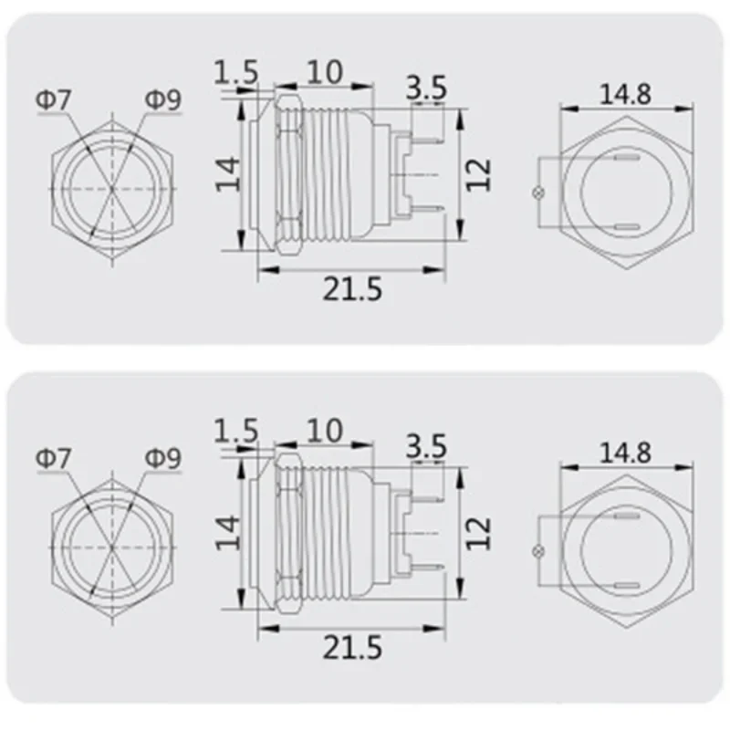 - Measures 12mm in diameter with an overall length of 21mm, requiring a precise 12mm mounting hole for installation.