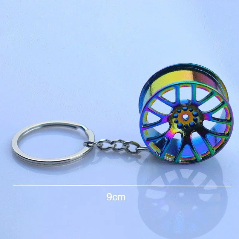 - Each keychain features intricate, realistic detailing with smooth cylindrical shapes, spokes, mechanical elements, and dark inner accents for an authentic industrial aesthetic.