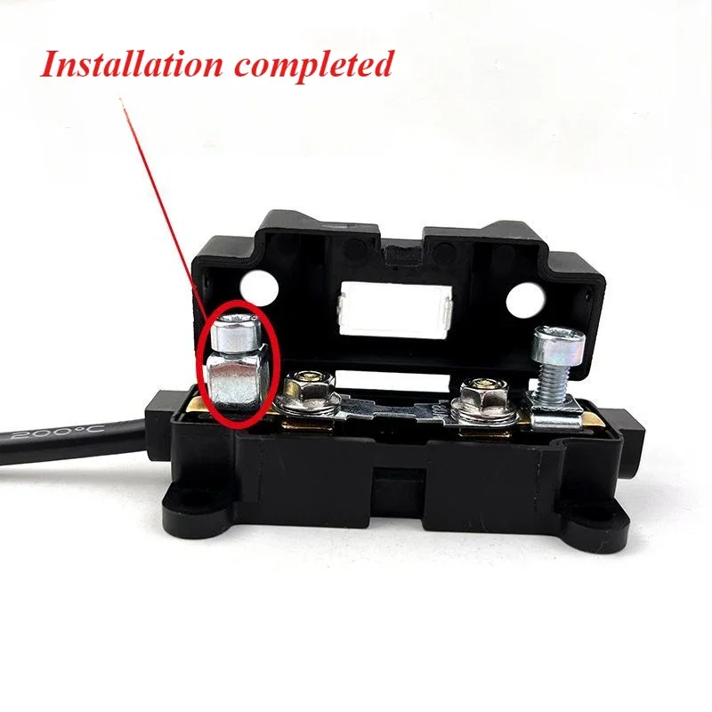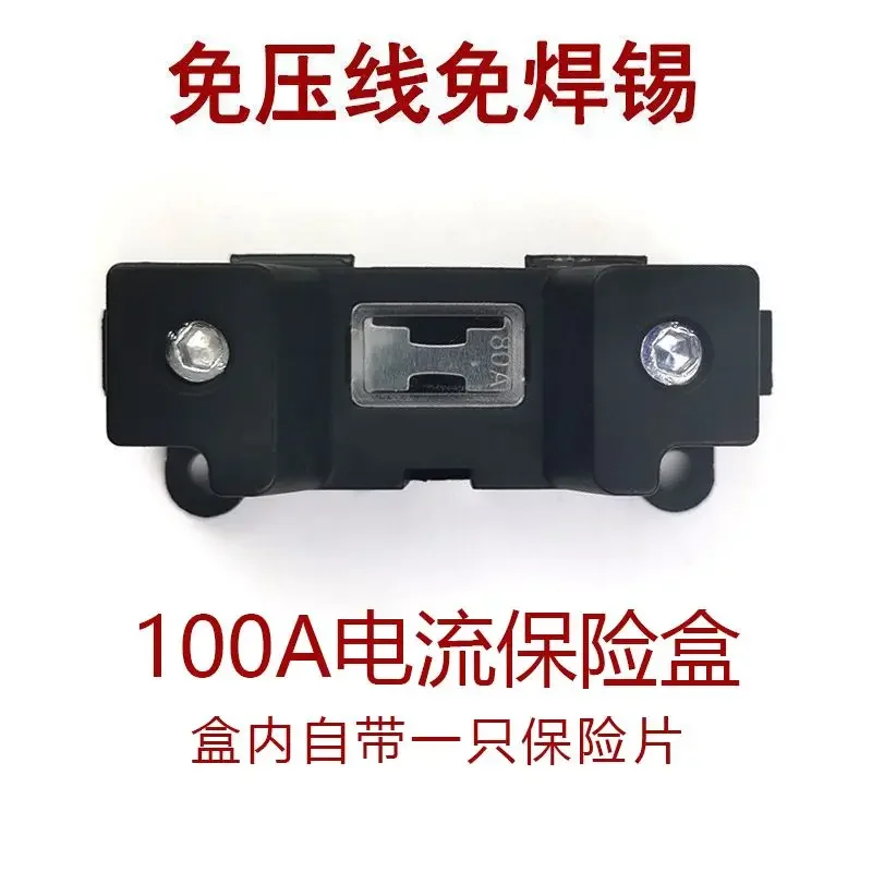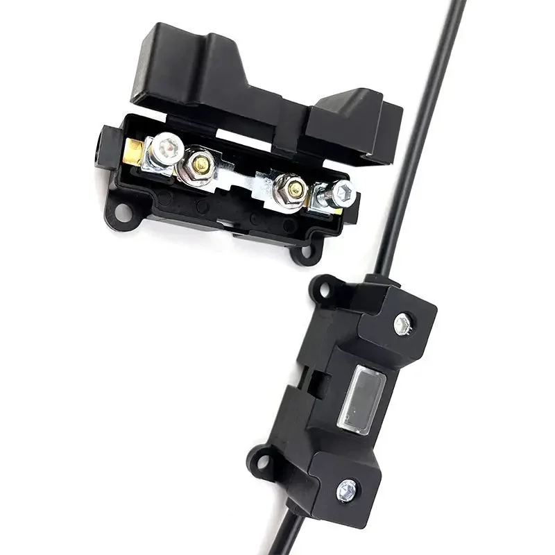 Experience reliable electrical protection with this high-quality, pressure-free wire fuse box. Crafted from durable black plastic, its sleek rectangular design combines a modern utilitarian style with rugged strength. The smooth surface and clean lines highlight its sturdy construction, ideal for demanding environments. The hinged lid opens easily, revealing precise, polished metallic connectors secured with screws, designed for secure fuse placement. Capable of supporting up to 220V, it offers a range of current ratings from 20A to 100A, accommodating various high-power applications such as parking air conditioning and welding-free current protection. Its screw fastening system ensures stable installation. Perfect for professional use, it blends technical precision with a durable, industrial aesthetic, providing long-lasting performance and peace of mind.