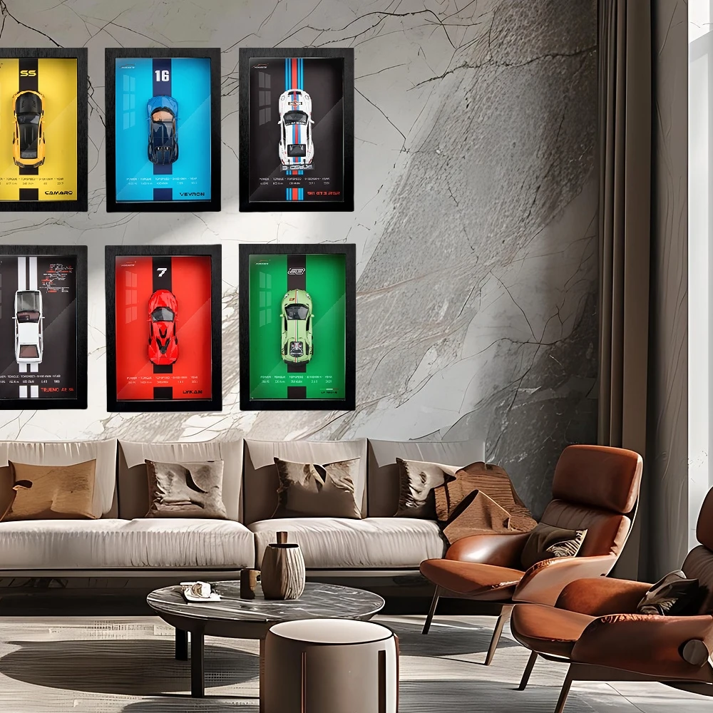 Transform your living space or office with this stunning 12-inch wall-mounted display that perfectly combines modern design with your passion for cars. Featuring a sleek wooden frame and a highly detailed 1:32 scale diecast miniatures, each piece is a standout addition to your decor. Available in vibrant colors such as AE86, BMW M8 GTE, Chevrolet Camaro, Chiron, Lamborghini LP780-4, Lykan, Porsche 911 GT3 RS, and Shelby GT500, it allows you to personalize your space with your favorite models. Crafted from durable metal with a stylish wooden finish, this display offers exceptional craftsmanship and longevity. With a compatible button cell battery, it activates illumination and movement features that emphasize the intricacies of each car's design, giving your space an energetic, automotive vibe.