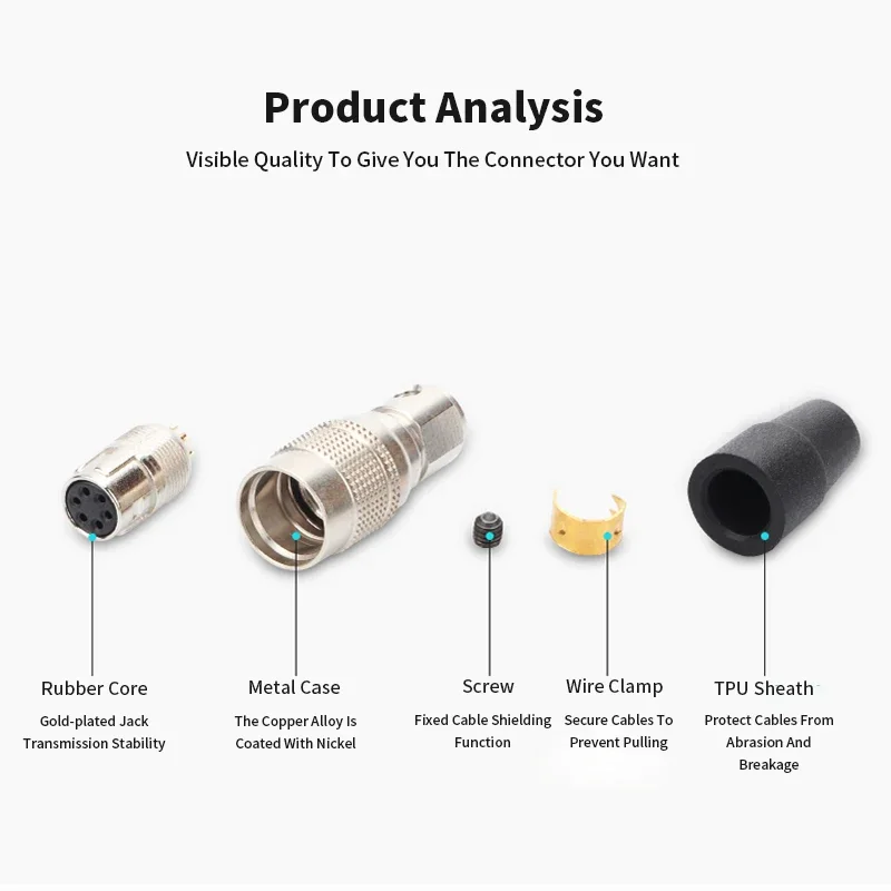 Elevate your industrial camera systems with this reliable and versatile aviation connector range. Designed for precision and durability, these connectors ensure secure power connections in demanding environments. Incorporating technical features like gold-plated contacts and customizable voltage options, they provide peace of mind and lasting performance. Whether you're upgrading your current setup or installing a new system, this product offers the perfect blend of functionality and industrial aesthetics. Invest in this trusted set today to ensure your equipment operates smoothly and efficiently over time.