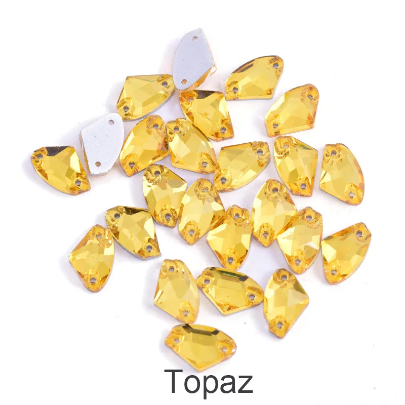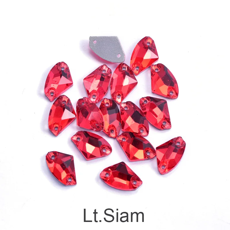 Bring your creative projects to life with this stunning collection of axe-shaped, glass sew-on rhinestones. Designed with a flatback for easy sewing onto clothing, accessories, or crafts, these high-quality rhinestones catch the light beautifully with their reflective, glossy surfaces. Available in vibrant colors including Lt. Siam, Topaz, Crystal AB, Blue Zircon, and more, they add a colorful, shimmering touch to wedding dresses, shoes, bags, jewelry, or DIY garments. Varying sizes—9x14mm and 12x19mm—offer versatility for different design needs. Whether for nail art or elaborate craft embellishments, these rhinestones offer a luminous, eye-catching aesthetic that will make your accessories stand out with style and elegance.