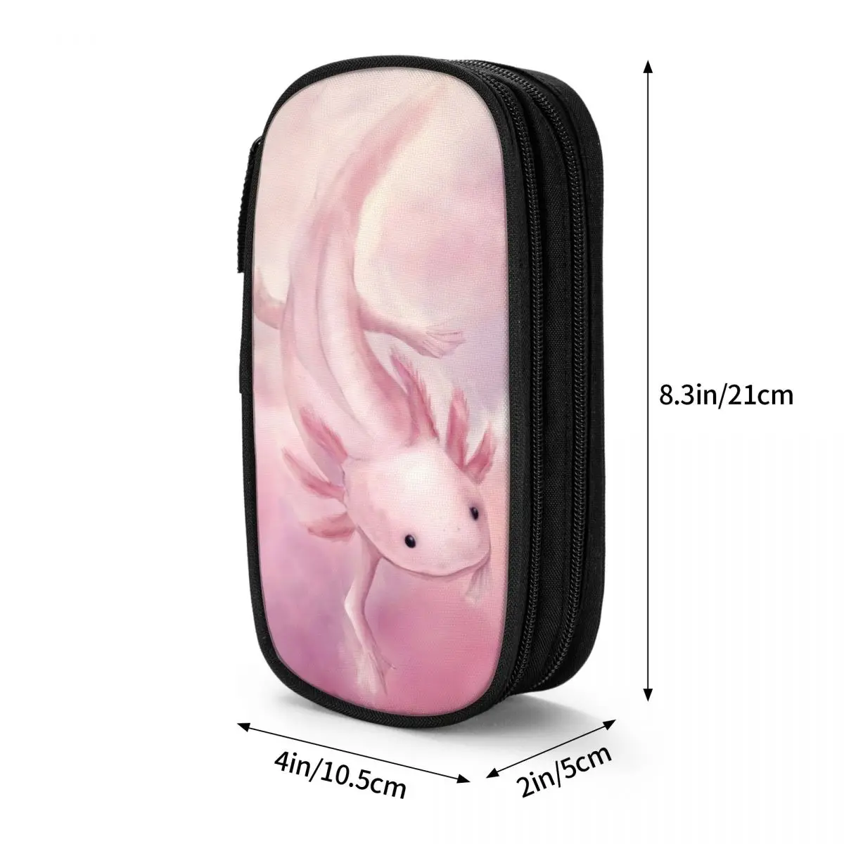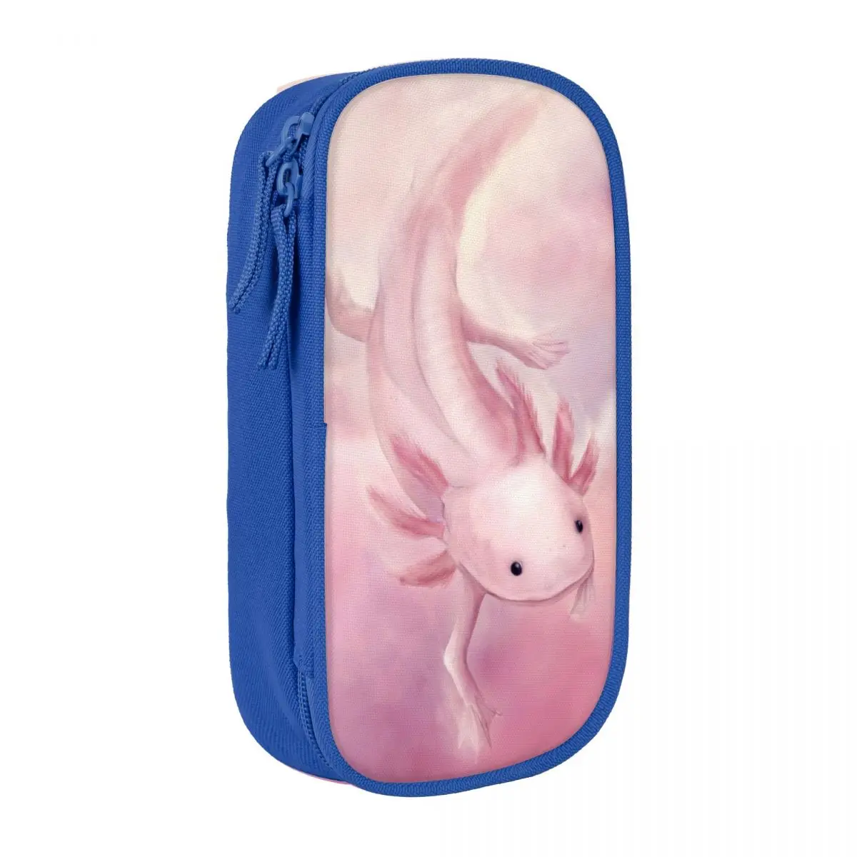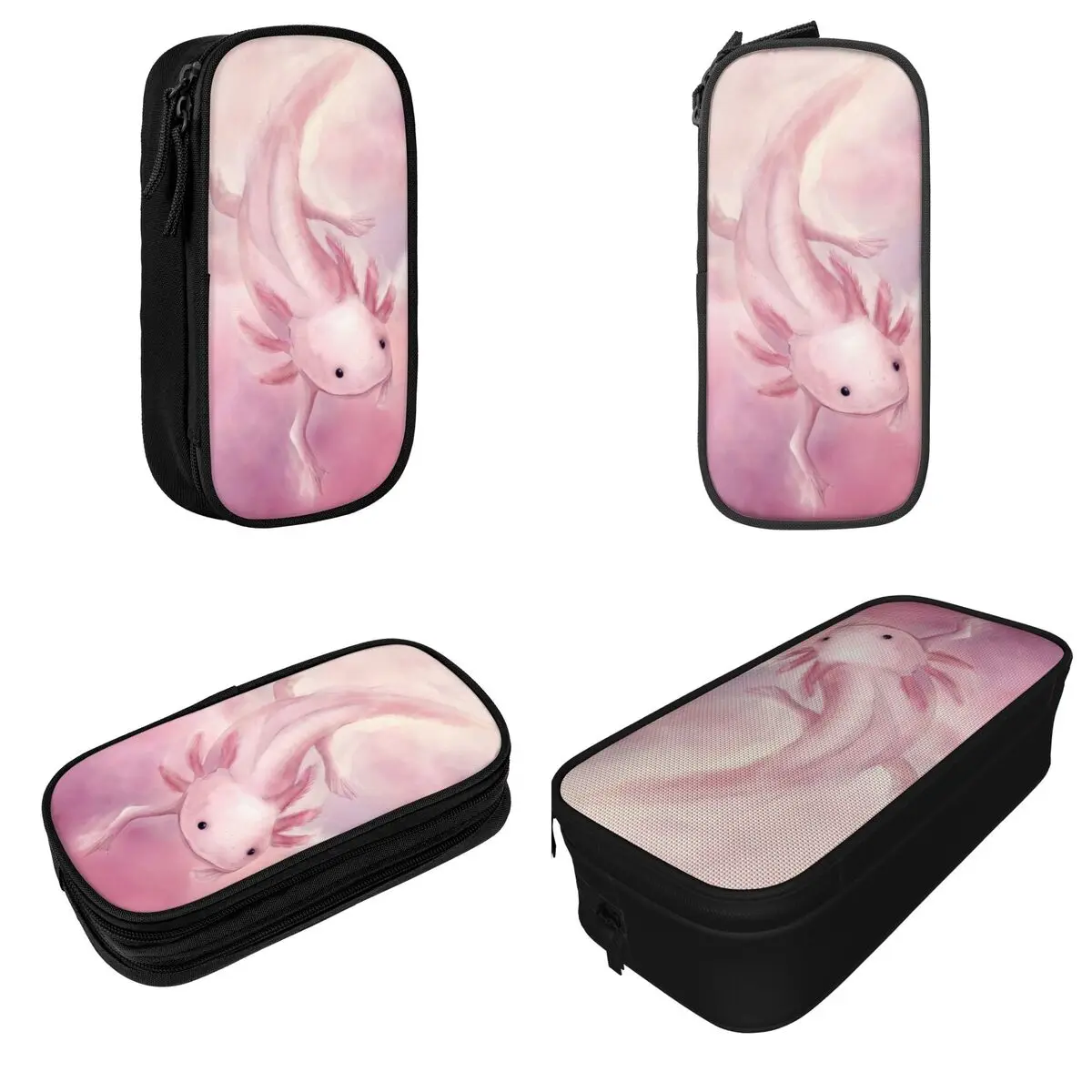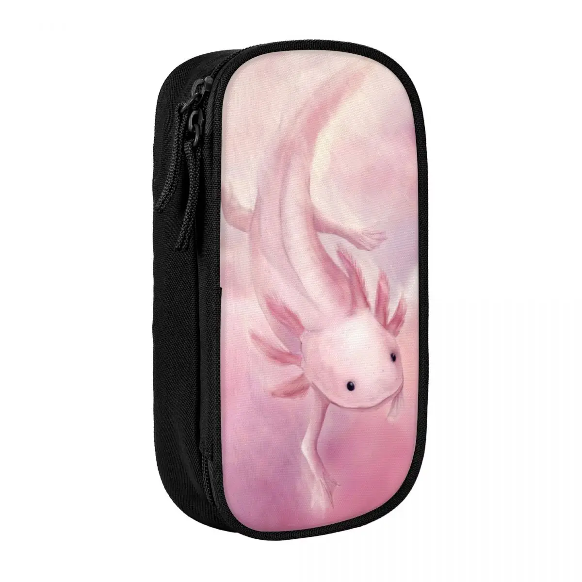 The Lovely Axolotl Aquatic Pencil Case combines playful aesthetics with practicality, showcasing a charming soft pink axolotl illustration on a sleek black fabric exterior. This large storage pencil case, available in pink, black, and blue, features a spacious interior with multiple compartments, perfectly designed for organizing all your stationery needs, whether for school or office use. The rectangular shape with rounded edges adds a modern touch, while the whimsical design caters to collectors and enthusiasts who appreciate cute novelty items. Elevate your stationery collection with this delightful pencil pouch that effortlessly blends fun and functionality.