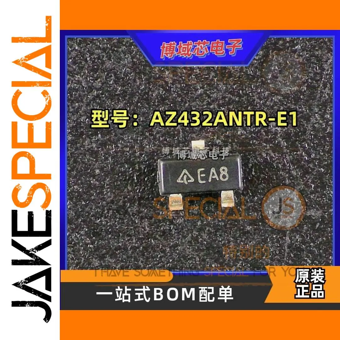 Experience reliable performance with this set of five new, original AZ432ANTR-E1 switches. Featuring a sleek black rectangular design with a matte finish, these switches combine functionality with a minimalist aesthetic. The top surface displays the clear white screen printing code “EA8,” ensuring easy identification. The gold or copper-colored terminals protrude from the bottom, providing excellent conductivity and secure circuit connections. Packaged in the compact SOT-23 format, these switches are ideal for various electronic projects and replacements. Whether you're designing a new device or replacing worn components, this set guarantees high-quality performance, durability, and ease of integration into your electronic system. Trust this product for your precision requirements.