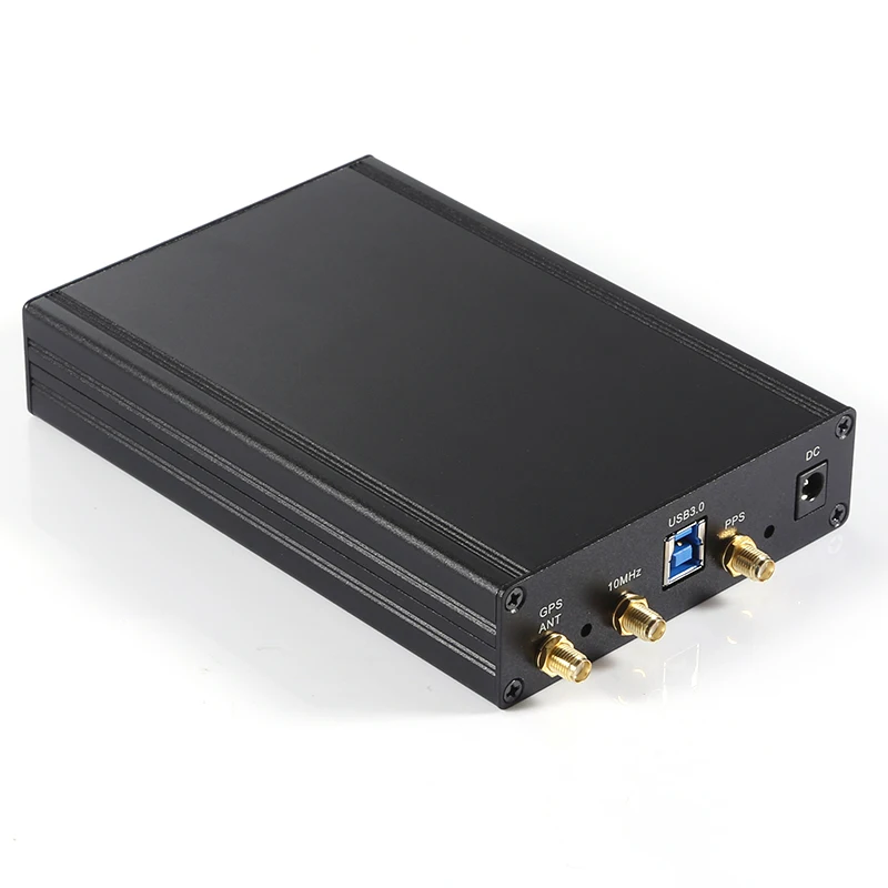 Experience the power and versatility of this sleek, black metal-encased SDR transceiver designed for advanced wireless communication testing and development. With a compact 150mm by 98mm form factor, it combines professional-grade performance with portability. The device features a robust dual-channel RF transceiver chip supporting frequencies from 70 MHz to 6 GHz, making it ideal for diverse applications such as FM, TV broadcast, cellular, GPS, WiFi, and ISM. Its FPGA-based onboard signal processing, featuring a Spartan 6 XC6SLX150 chip, ensures seamless data handling, with a maximum sampling rate of 61.44 MS/s (quadrature), and up to 56 MHz RF bandwidth. The device’s carefully arranged connectors and ports, including two SMA ports for GPS antenna and clock input, a blue USB 3.0 port, and a DC power input, enhance ease of use and connection flexibility. Supporting GPSDO and external references with 1 PPB accuracy, it guarantees high-precision synchronization for your experiments. Its minimalist, technical aesthetic underscores its professional build quality, making it perfect for high-tech environments and dedicated experimentation.