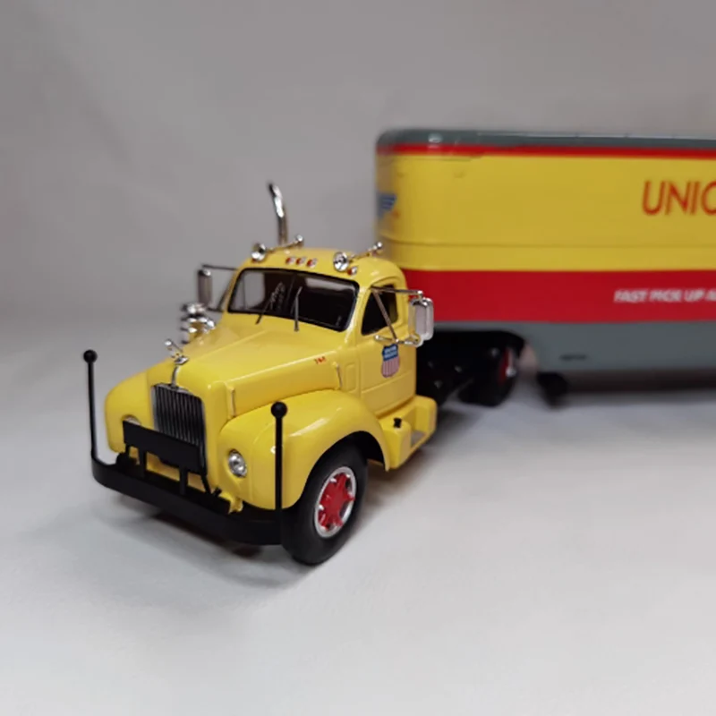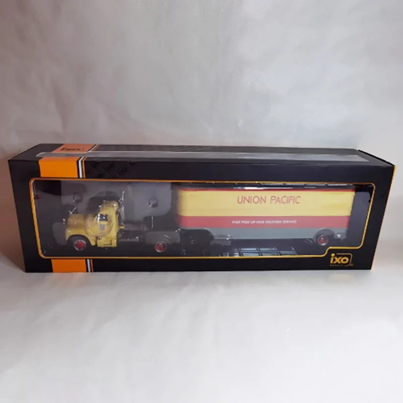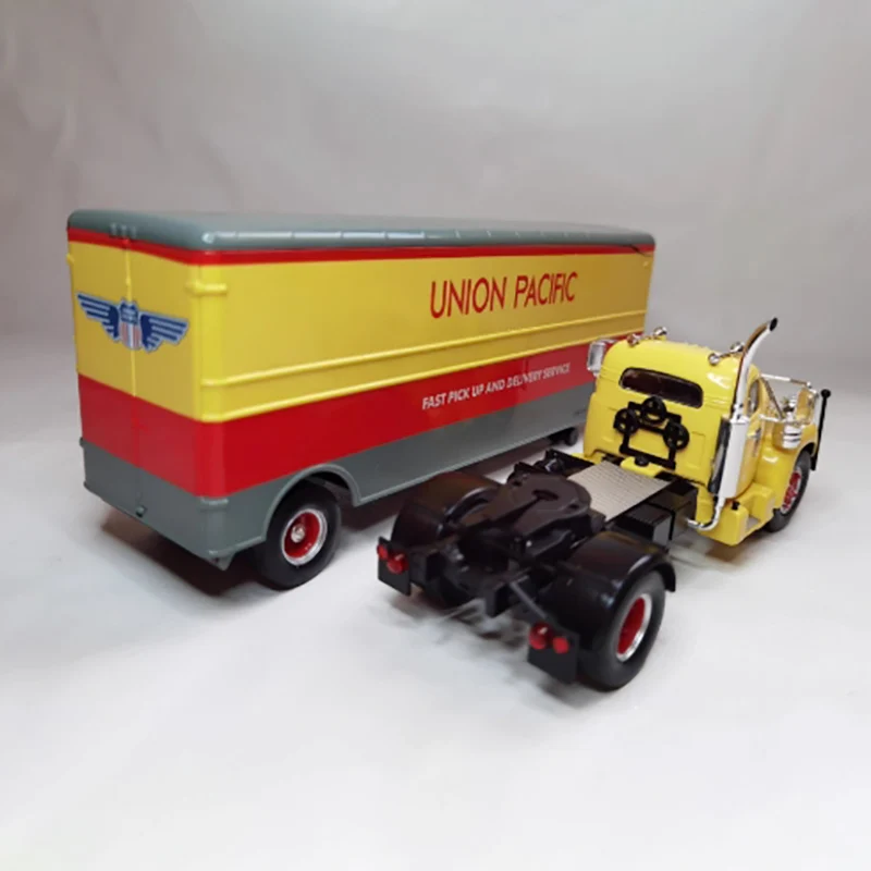 This stunning scale model of the B61 1955 UNION PACIFIC container truck is a masterpiece designed for collectors and enthusiasts alike. Constructed from high-quality alloy and plastic, this 1:43 scale model captures the essence of mid-20th century automotive design with a vibrant two-tone color scheme. The bright yellow front cab contrasts strikingly with the gray container featuring bold red and yellow accents. With intricate details such as the classic Union Pacific logo and red-painted rims, this model is perfect for display on your desk or as part of your collection. Let the nostalgia of vintage trucking grace your space with this eye-catching piece that showcases both historical significance and aesthetic appeal.