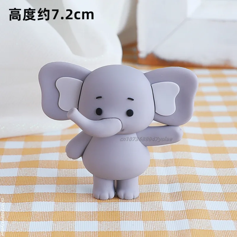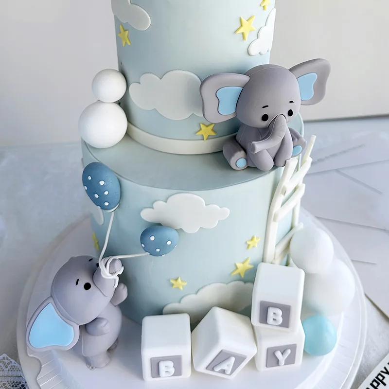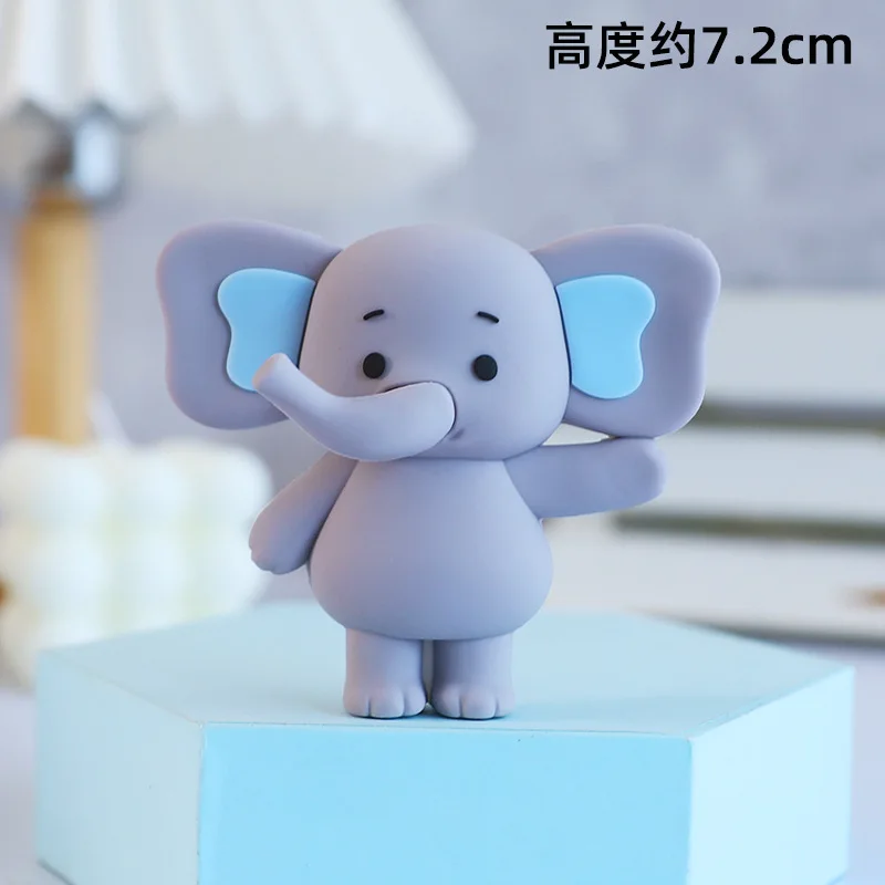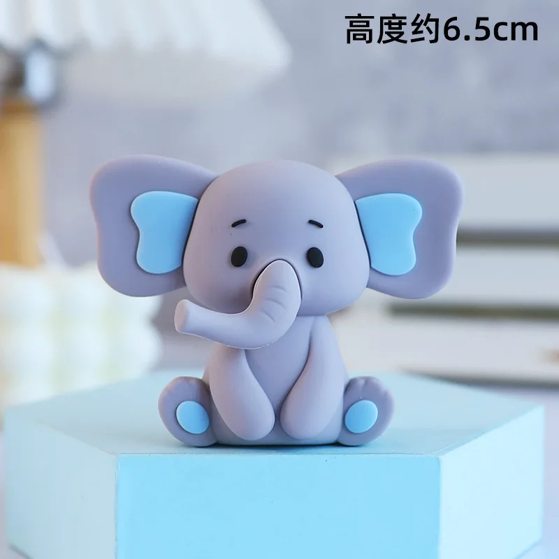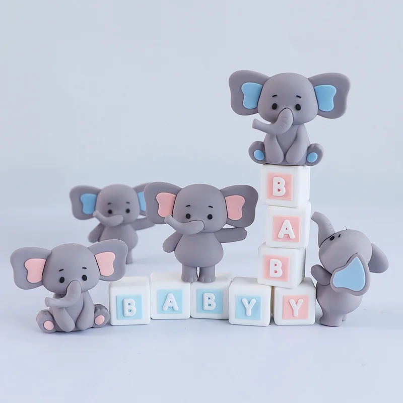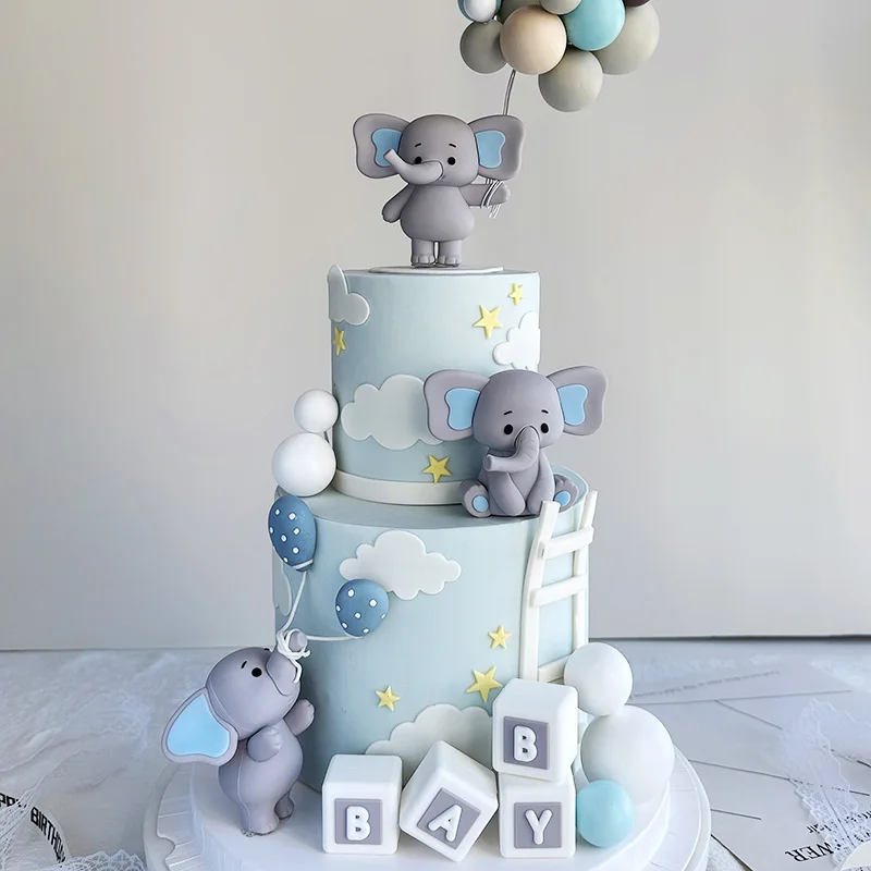 Make your celebration unforgettable with this charming baby elephant cake topper, crafted from soft latex and designed to bring a touch of whimsy to birthdays, baby showers, or gender reveal parties. The collection showcases cute, cartoon-style elephants in gentle pastel shades like lavender-gray, light blue, and pristine white, with large ears featuring contrasting pink or blue insides. These figurines are versatile for various themes, and their playful poses—a standing trunk-up elephant, sitting, or holding balloons—add lively appeal. Perfectly suited for children’s events or family gatherings, these toppers create a cheerful, adorable atmosphere. With their delicate design, they’ll beautifully enhance any cake, making your special occasion even sweeter.