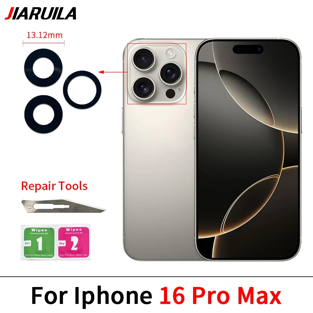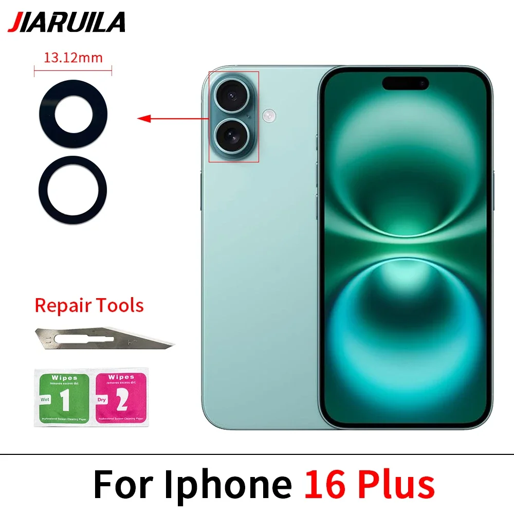 Elevate your iPhone 16 series repair with this premium back camera glass lens compatible with iPhone 16, 16 Plus, 16 Pro, and 16 Pro Max models. Crafted from durable glass, it restores the sleek and sophisticated look of your device’s rear camera. The package includes the precise lens, an adhesive sticker for easy installation, and a dedicated tool to ensure a seamless fit. Designed to match the dimensions of each model’s camera setup—featuring two lenses for the iPhone 16 and 16 Plus, and three lenses for the iPhone 16 Pro and Pro Max—this replacement part offers a high-quality, reliable solution to fix scratches, cracks, or damage, helping you regain your device’s pristine appearance effortlessly.