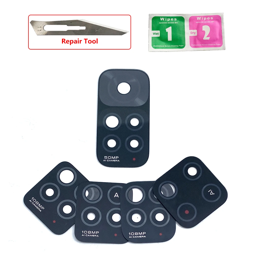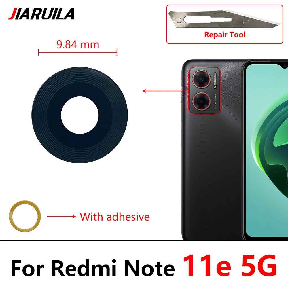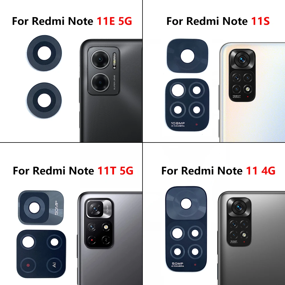 Upgrade your smartphone with the Back Rear Camera Glass Lens, designed for a variety of Xiaomi models including Redmi Note 11S, Redmi Note 11 Pro Plus, Redmi Note 11 Pro 5G, Redmi Note 11 Pro 4G, Redmi Note 11E 5G, Redmi Note 11T 5G, Redmi Note 11 Global, Xiaomi Mi 11, Xiaomi Mi 11 Lite 5G, Xiaomi Mi 11T, Xiaomi Mi 11T Pro, and Xiaomi Mi 11 Ultra. This sleek glass lens features a glossy metallic silver finish and a black rectangular version with multiple lens openings. Each lens comes with adhesive for easy installation, making repairs simple and stylish.