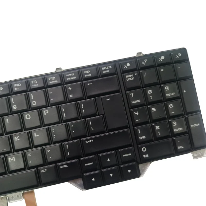 The new backlit laptop keyboard designed specifically for Dell Alienware 17 R2 and R3 models combines functionality and sleek design. Its matte black finish provides a contemporary look, while bright white lettering on each key ensures clear visibility at all times. This keyboard supports multiple language layouts including UI/US/UK/Canadian French, Spanish, and Swedish, catering to a wide range of users. With dedicated multimedia keys for seamless control and backlighting for low-light environments, this product enhances your typing experience. The robust design guarantees durability, making it an ideal replacement option for your original keyboard, improving both aesthetics and usability.