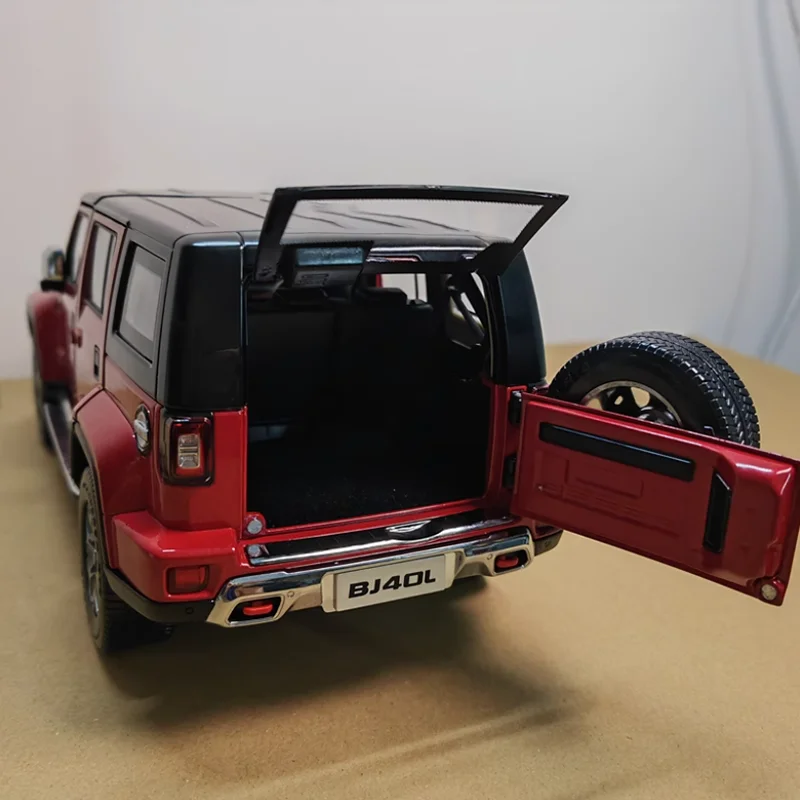 Experience the allure of this highly detailed 1:18 scale diecast alloy model of the BAIC BJ40L PLUS 2018 SUV. With its vibrant, glossy red finish, this model captures a bold, modern aesthetic that commands attention. Every element, from the sleek exterior lines to the intricately crafted interior, reflects pairing ruggedness with sophistication. The open doors, hoods, and rear hatch reveal realistic interior and engine details, allowing you to appreciate the fine textures of the seats, dashboard, and engine bay. The rotating wheels enhance the dynamic look, making this a captivating display piece. Whether you’re a collector or a passionate enthusiast, this model offers an immersive glimpse into the design excellence of this SUV, perfect for showcasing in your space.