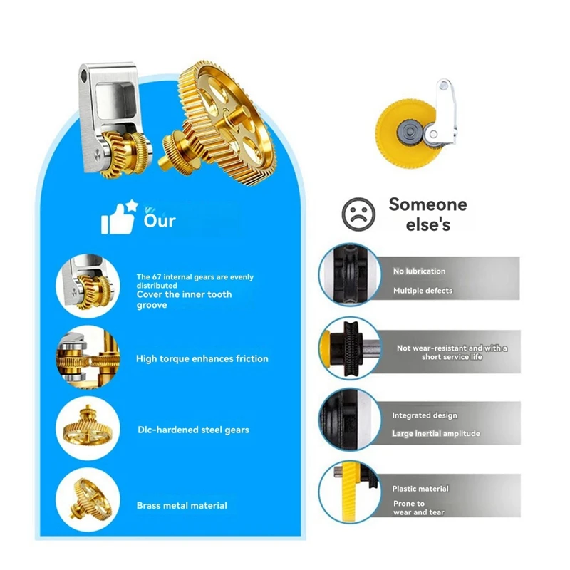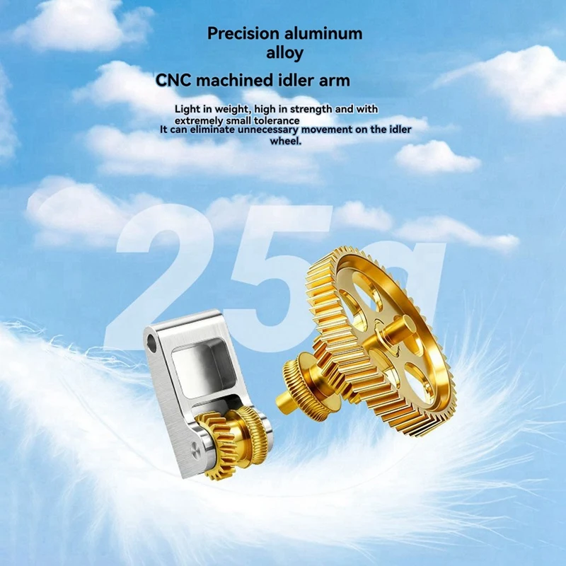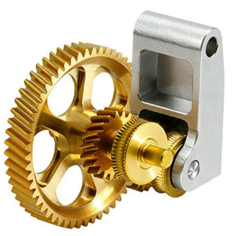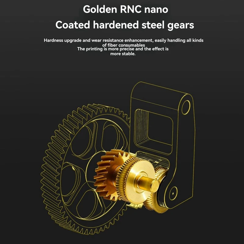 Enhance your Bambu Lab P1S and X1 3D printers with this durable gear kit, featuring a gold-colored extruder gear and feed wheel made from hardened steel and brass. The nano-coated feed wheel ensures increased durability and precise filament grip, while the high-quality metallic components provide a robust, industrial aesthetic. This hardware set, designed specifically for filament feed mechanisms, includes one extruder gear and a matching feed wheel, along with smooth, polished bearings that reduce friction for seamless operation. Built for professionals and enthusiasts seeking reliable, long-lasting parts, this gear kit offers performance and craftsmanship to optimize your printing experience.