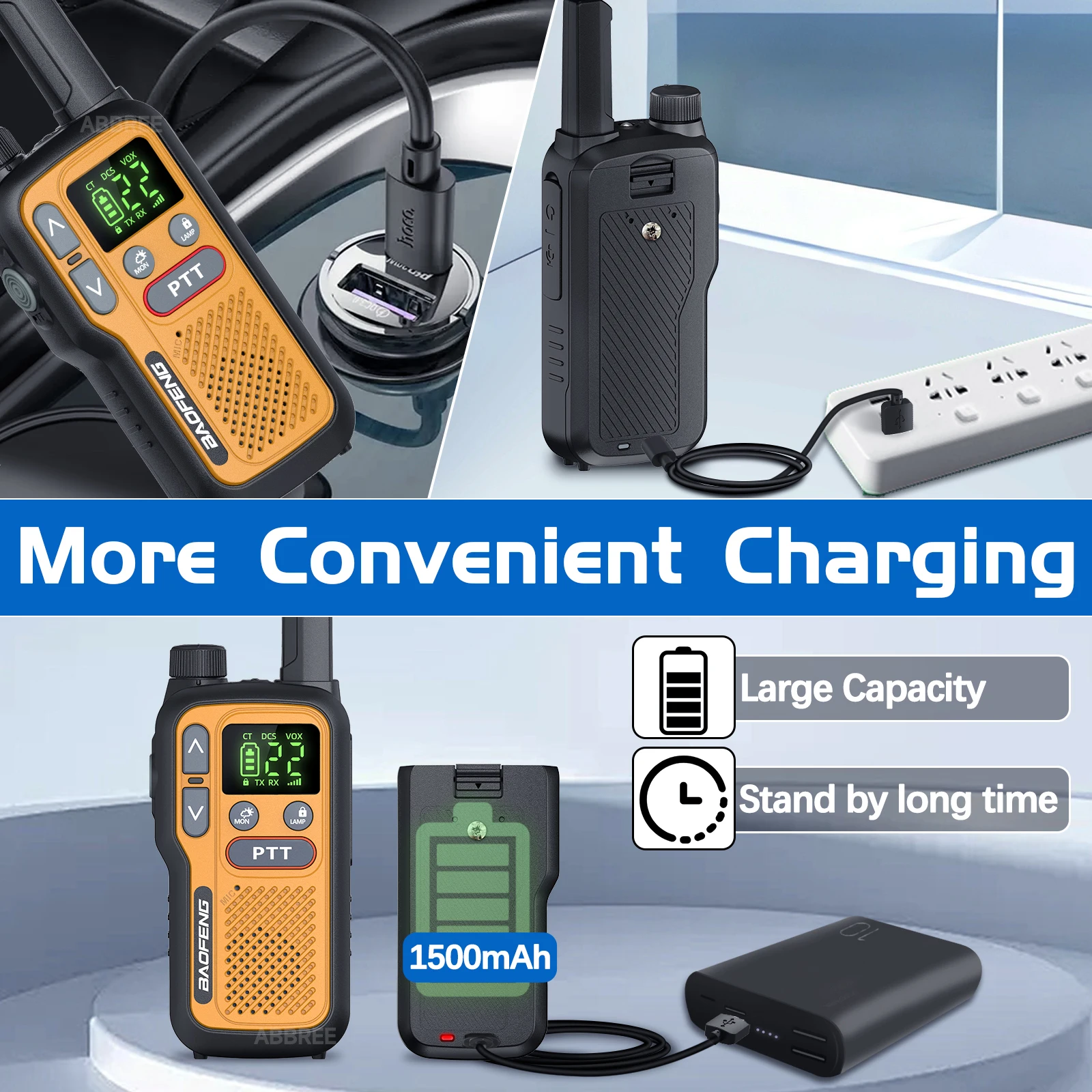 - Features a large display screen, 50 CTCSS tones, 210 DCS codes, and a Type-C USB charging interface for convenience and customization.
