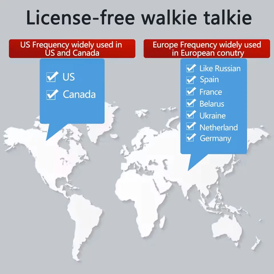- Operates on PMR 446MHz and FRS 462MHz frequency bands with 16 PMR and 22 FRS channels for versatile regional use.