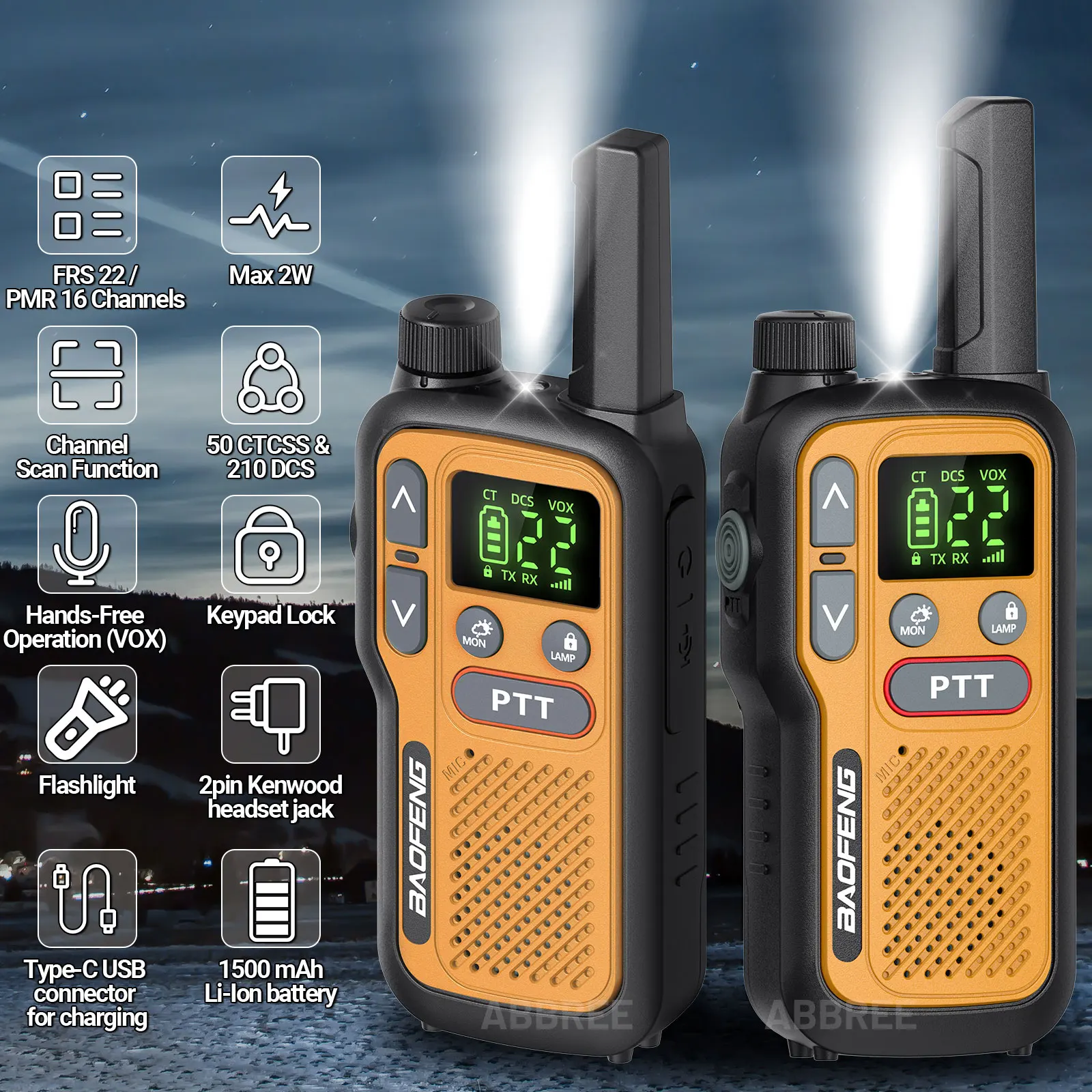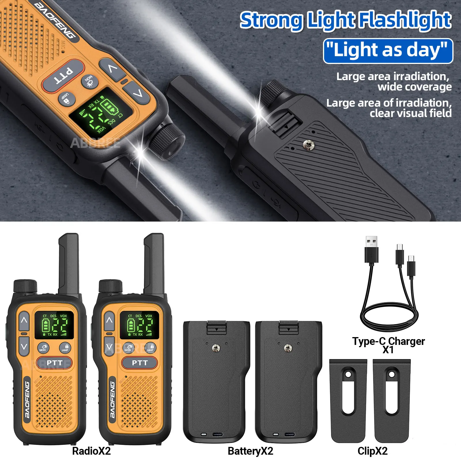 Imagine having reliable two-way communication right at your fingertips, perfect for outdoor adventures, camping trips, or team activities. These Baofeng BF-T18 mini walkie talkies blend a sleek, modern design with practical features, ensuring you're always connected. Their compact, rectangular shape with rounded edges makes them comfortable to hold, while the textured black exterior provides an excellent grip. The vibrant accents in orange, blue, green, white, yellow, or black highlight the power button, antenna, and control knobs, adding a splash of color to your gear. Equipped with a bright LCD display and high-definition audio, these radios deliver clear sound even in noisy environments. Plus, the built-in flashlight and weather alert functions further enhance their outdoor utility.