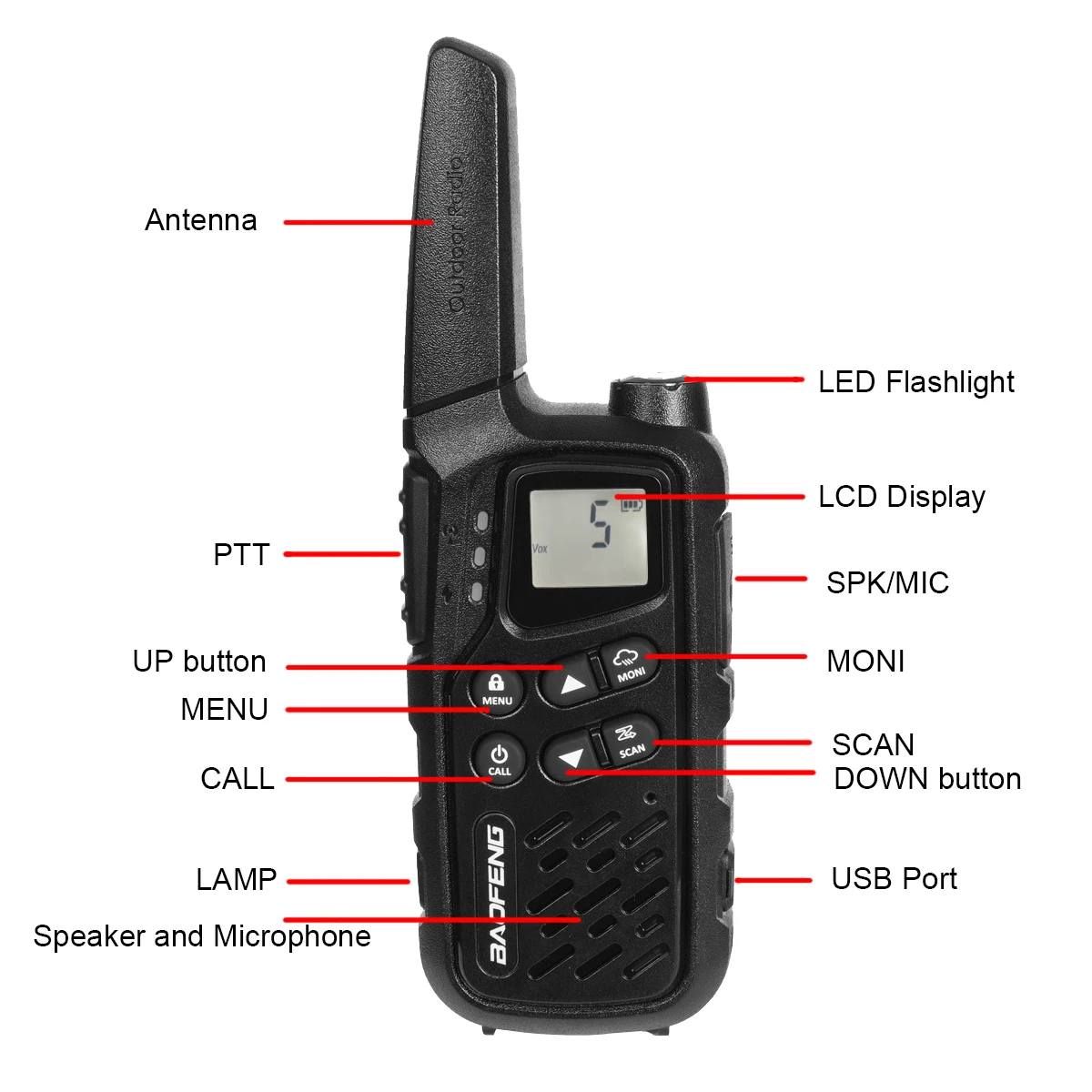 Keys features of the Baofeng EP25 PMR446 Walkie Talkie