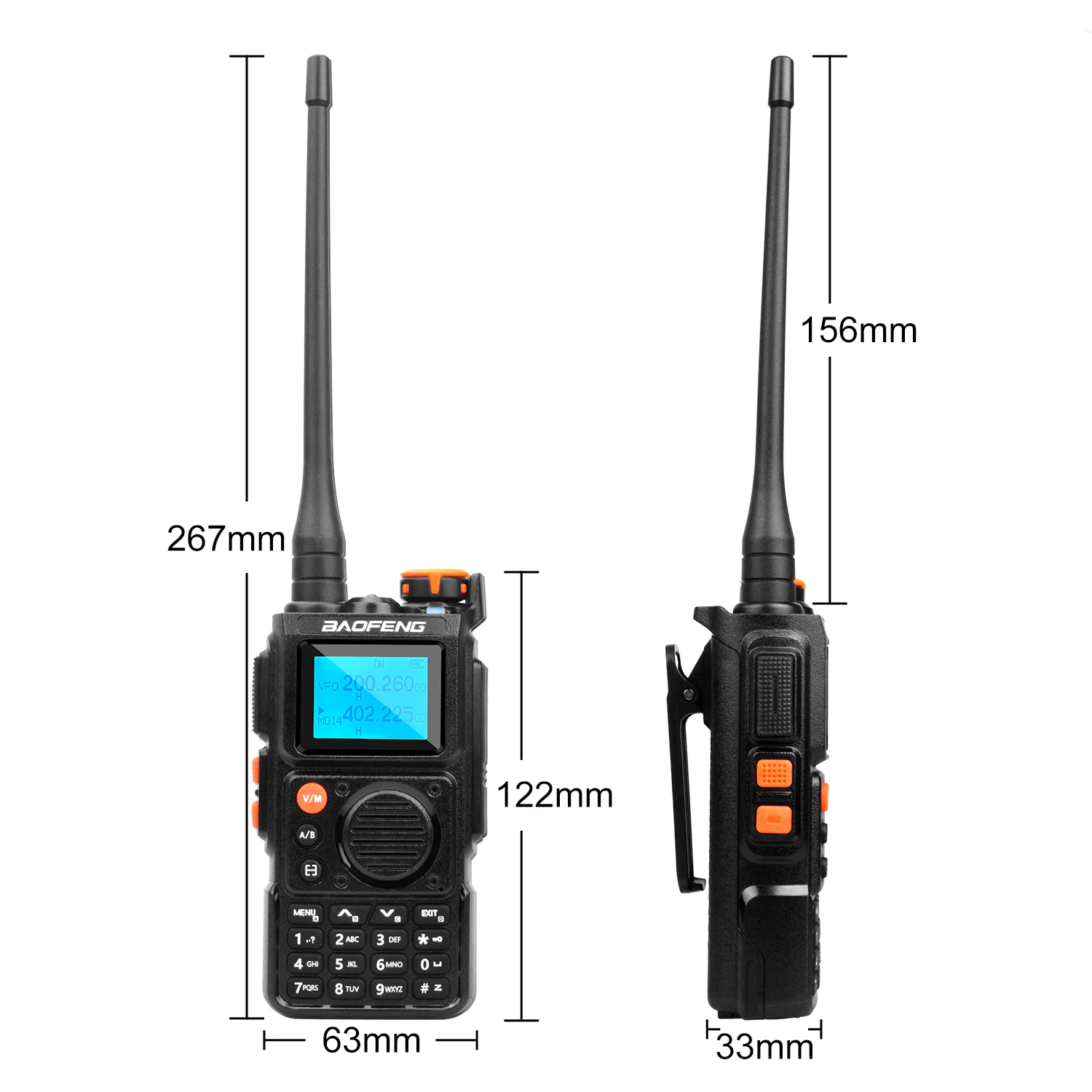 Discover the convenience and reliability of this stylish Baofeng K6 walkie talkie, crafted for seamless coordination and outdoor adventures. Its sleek rectangular design with smoothly rounded edges offers comfort in hand, making it perfect for professionals and enthusiasts alike. The monochrome 1.44-inch LCD screen with blue backlight ensures easy readability in various lighting conditions. Vibrant orange accents on buttons add a modern touch while remaining highly functional. The textured rubberized back enhances grip, preventing slips during use. With its compact dimensions of 64x121x35mm and weight of just 240g, this device easily fits into your hand or pocket. Whether for work or recreation, this walkie talkie delivers crisp sound, robust features, and a stylish, user-friendly design, ready for immediate use in demanding environments.
