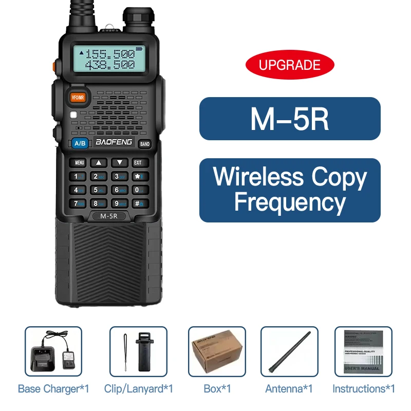 Having this Baofeng M-5R walkie-talkie in your kit means you're always ready for reliable, long-range communication whenever and wherever needed. Its powerful features, robust construction, and user-friendly interface ensure you stay connected in emergency situations or outdoor adventures. Expect high performance, easy programming, and a design that fits comfortably in your hand. Whether you’re hiking, camping, or managing outdoor events, this walkie-talkie offers the confidence and assurance you need. Invest in this trusted device today and enjoy a seamless communication experience during all your activities, with trusted durability and advanced features at your fingertips.