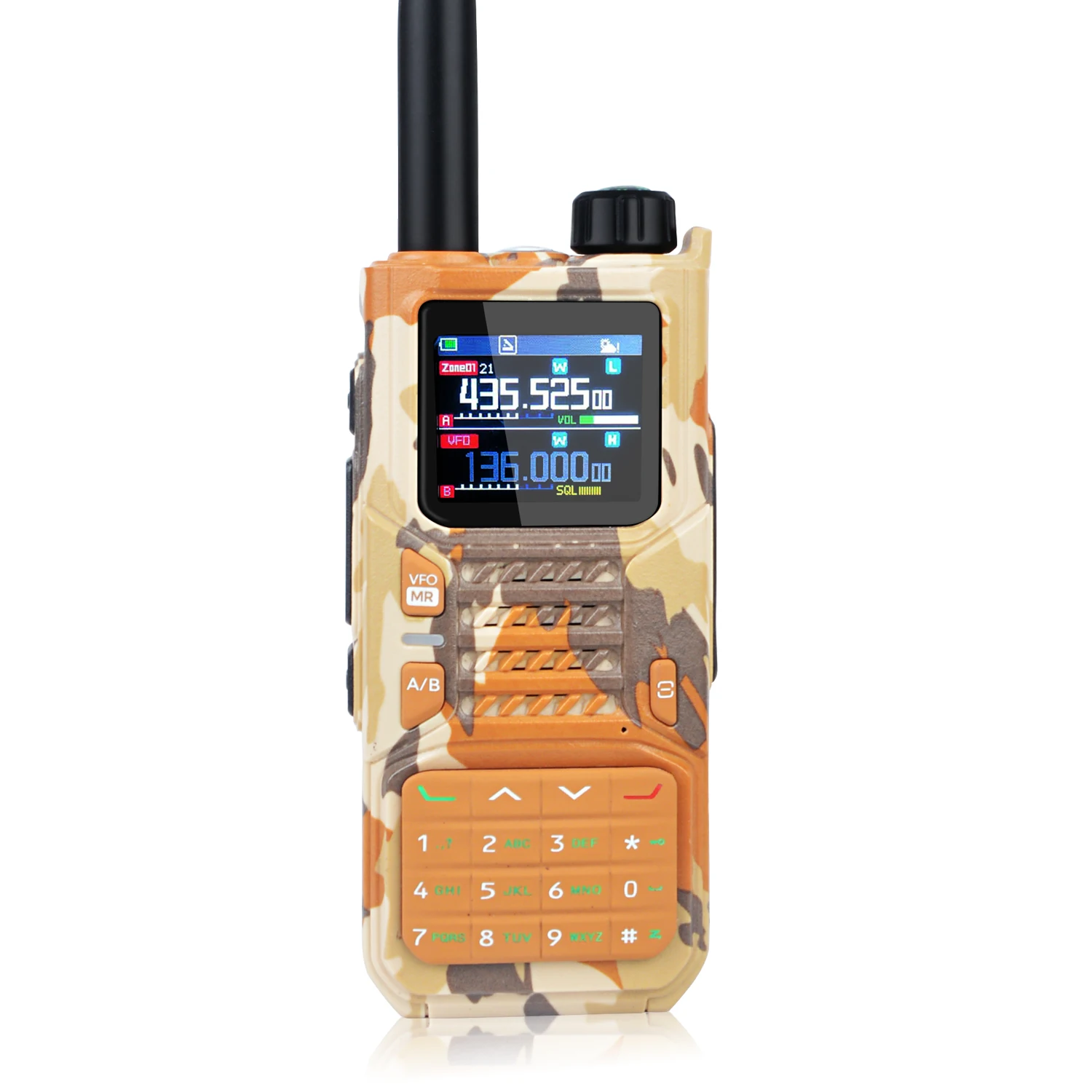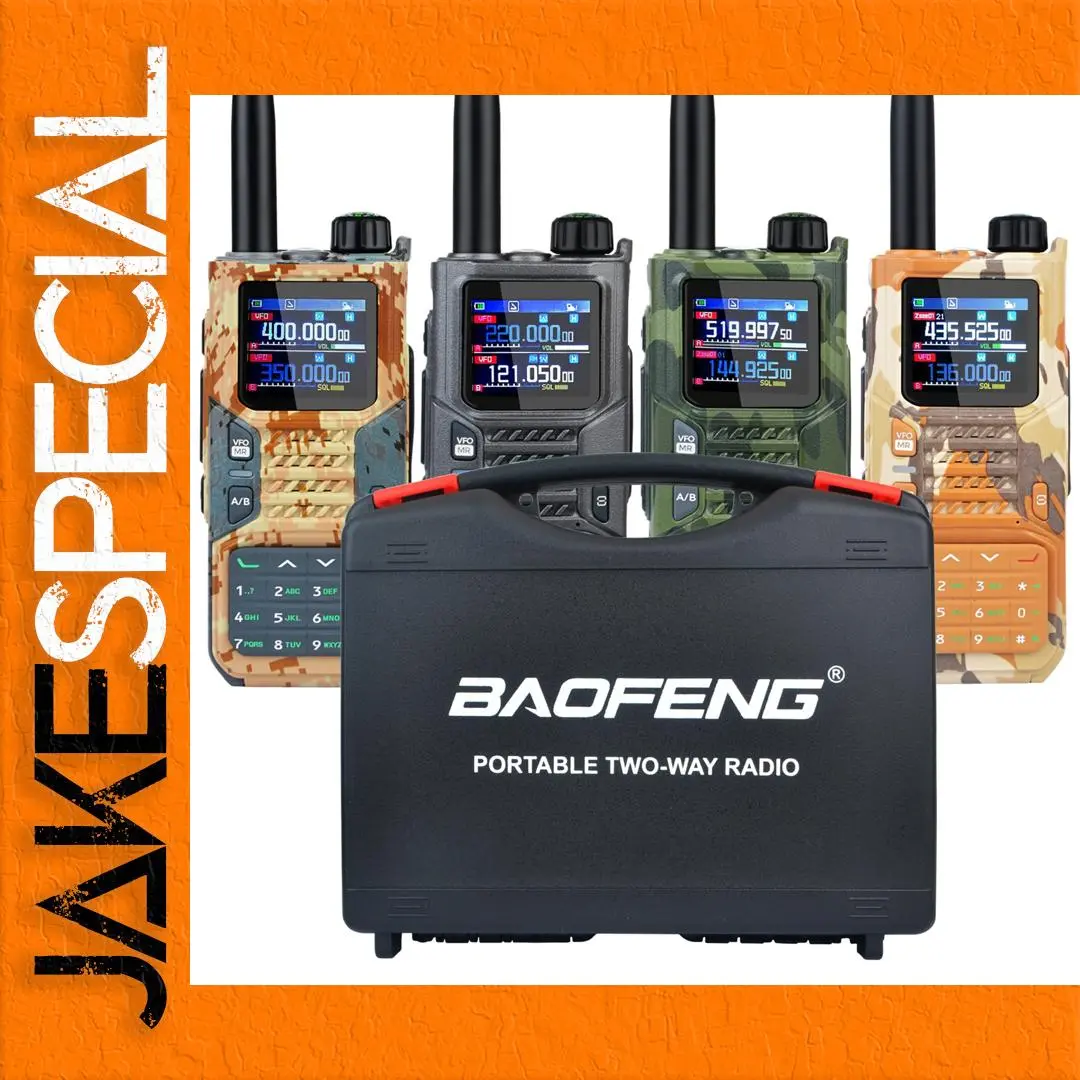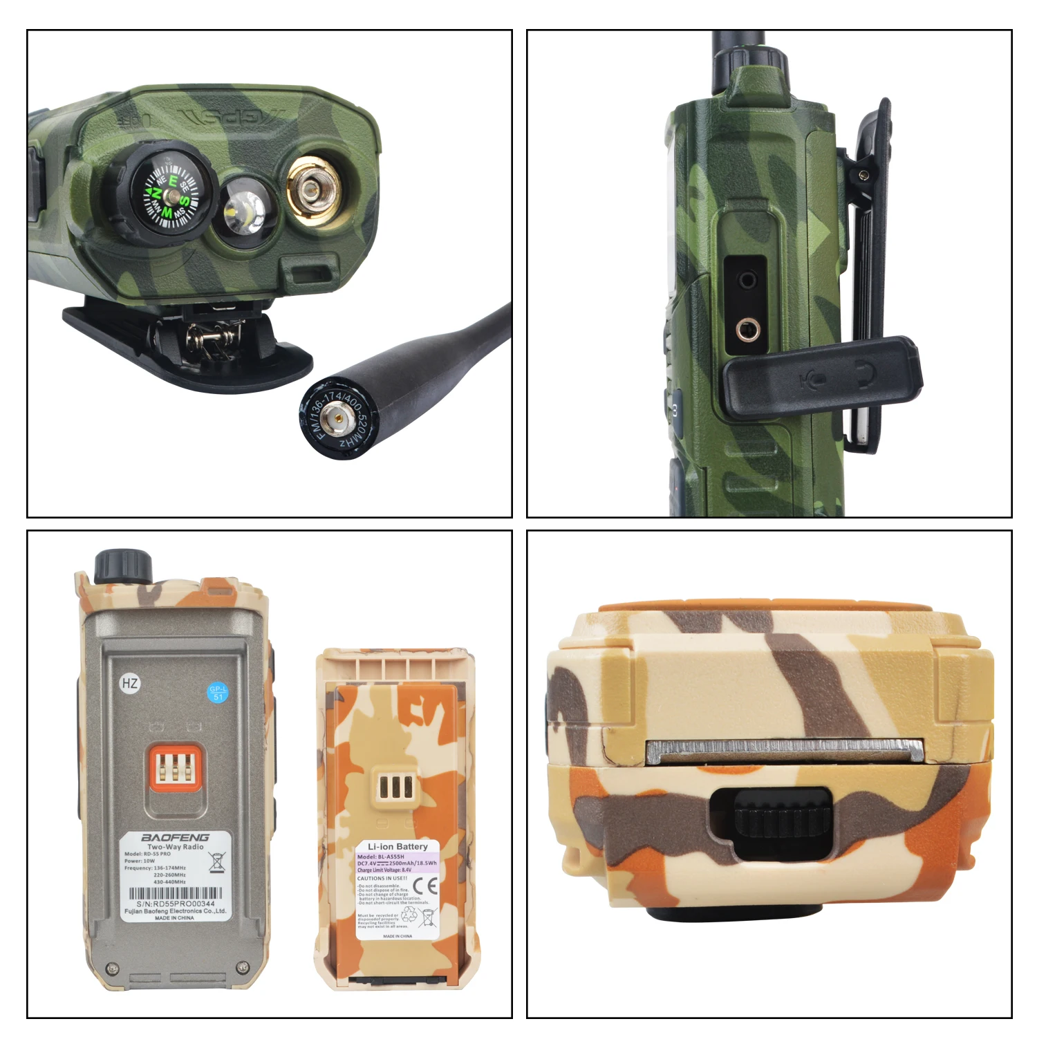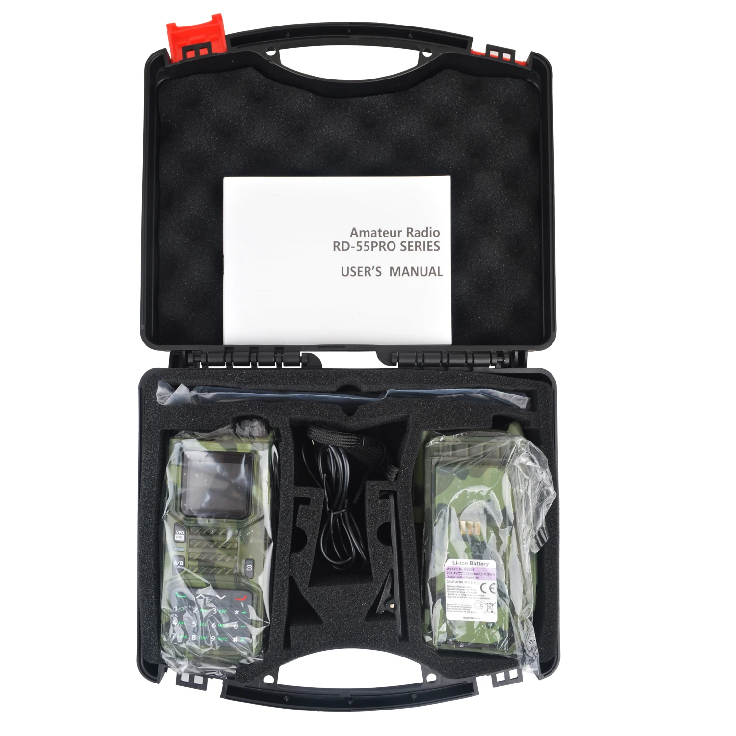 Experience reliable communication with the Baofeng RD-55 PRO, a powerful 10W dual-band walkie-talkie suitable for a variety of outdoor and professional activities. Designed with a sleek, rectangular body, it offers VHF and UHF frequencies covering 144-148 MHz and 420-450 MHz (America version) or 144-146 MHz and 430-440 MHz (EU version), supporting 640 channels with 12.5 kHz or 25 kHz spacing. Equipped with a 2500mAh rechargeable Li-ion battery providing approximately 20 hours of standby, it features GPS/Beidou/GLONASS positioning, APRS, NOAA weather alerts, man down alarm, Bluetooth remote control, and a multi-band FM radio. Its durable plastic suitcase ensures portability for outdoor users.