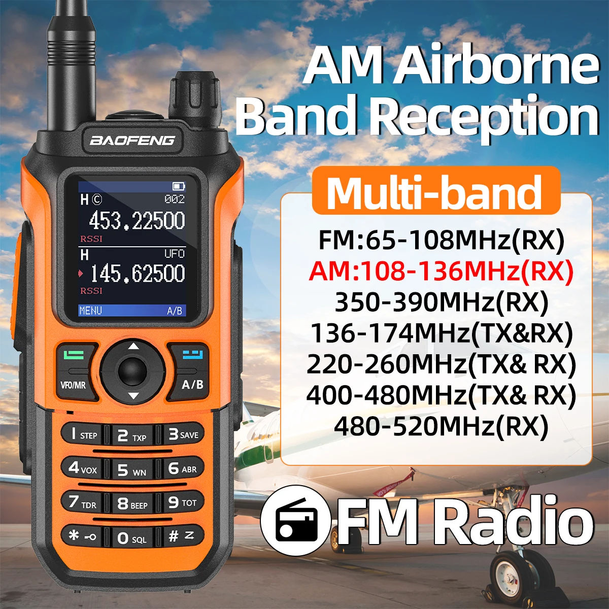 - Supports multiple frequency bands including FM 68-108MHz, AM 108-136MHz, 350-390MHz, 136-174MHz, 220-260MHz, 400-480MHz, 480-520MHz with RX/TX capabilities.