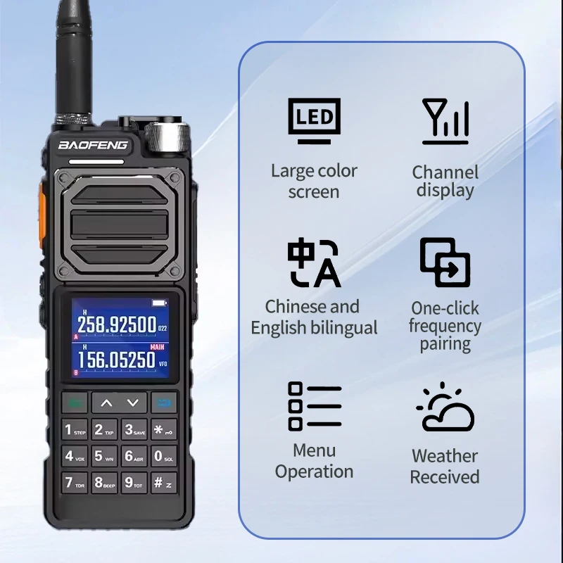 - Supports extensive frequency ranges from 108-520 MHz, including FM and NOAA weather channels, ideal for various communication needs and emergency protocols with full TX/RX capability.