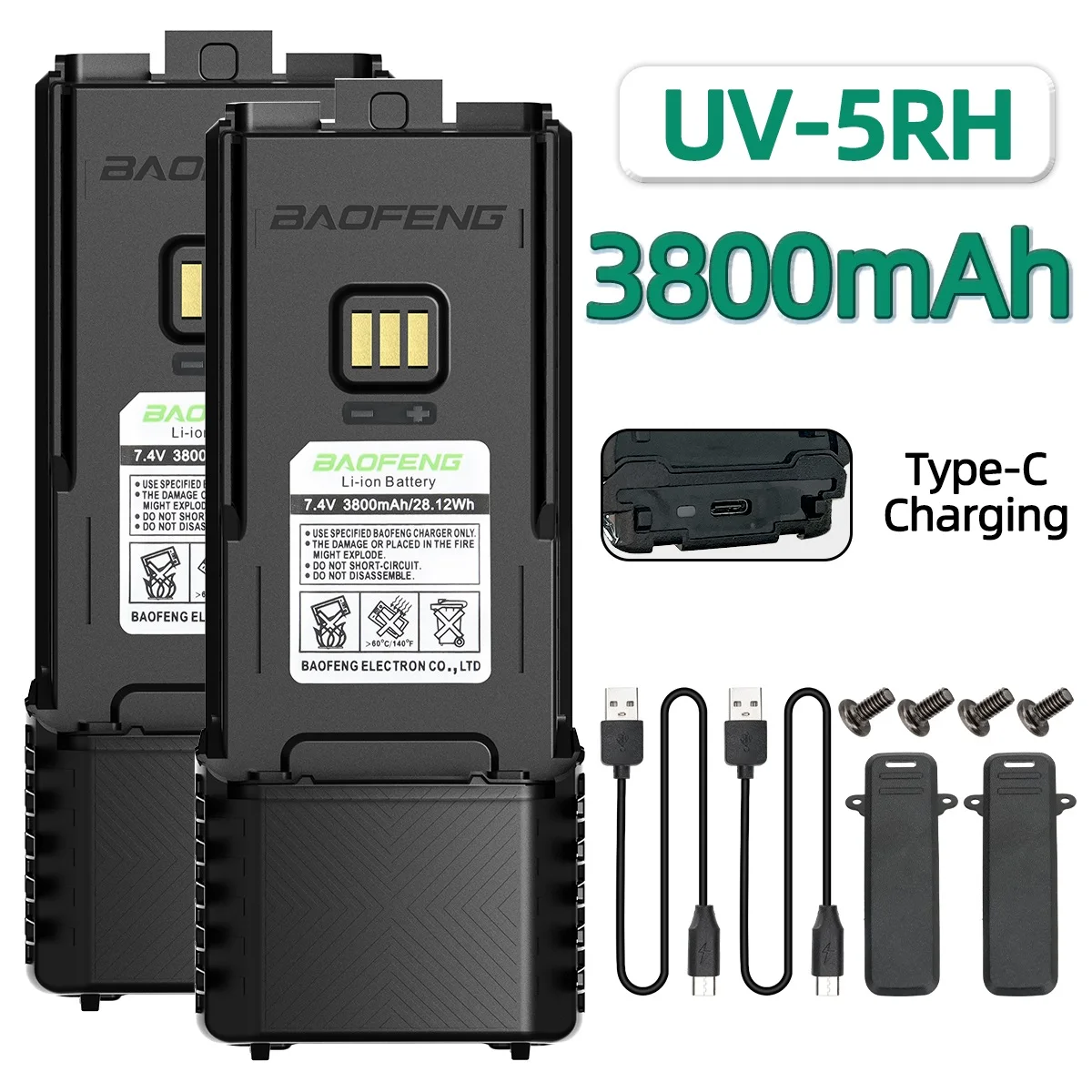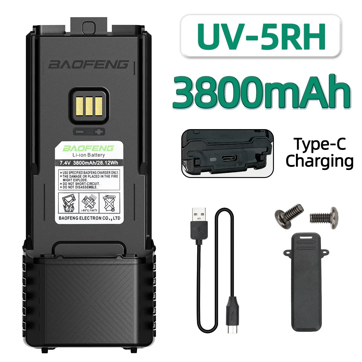 Experience uninterrupted communication with the Baofeng UV-5RH Extended Battery. With a remarkable capacity of 3800mAh, this lithium-ion battery ensures your two-way radio remains operational for longer periods. Designed specifically for models UV-5RM, AR-5RM, and GM-5RH, it offers a reliable power solution for your ham radio needs. The Type-C charging capability allows for hassle-free recharging, ensuring that you can keep it powered at all times. Its built-in protection system guards against over-charge, over-heat, and over-discharge, making it a perfect choice for any enthusiast who values performance and longevity. Never worry about running out of juice during critical moments again.
