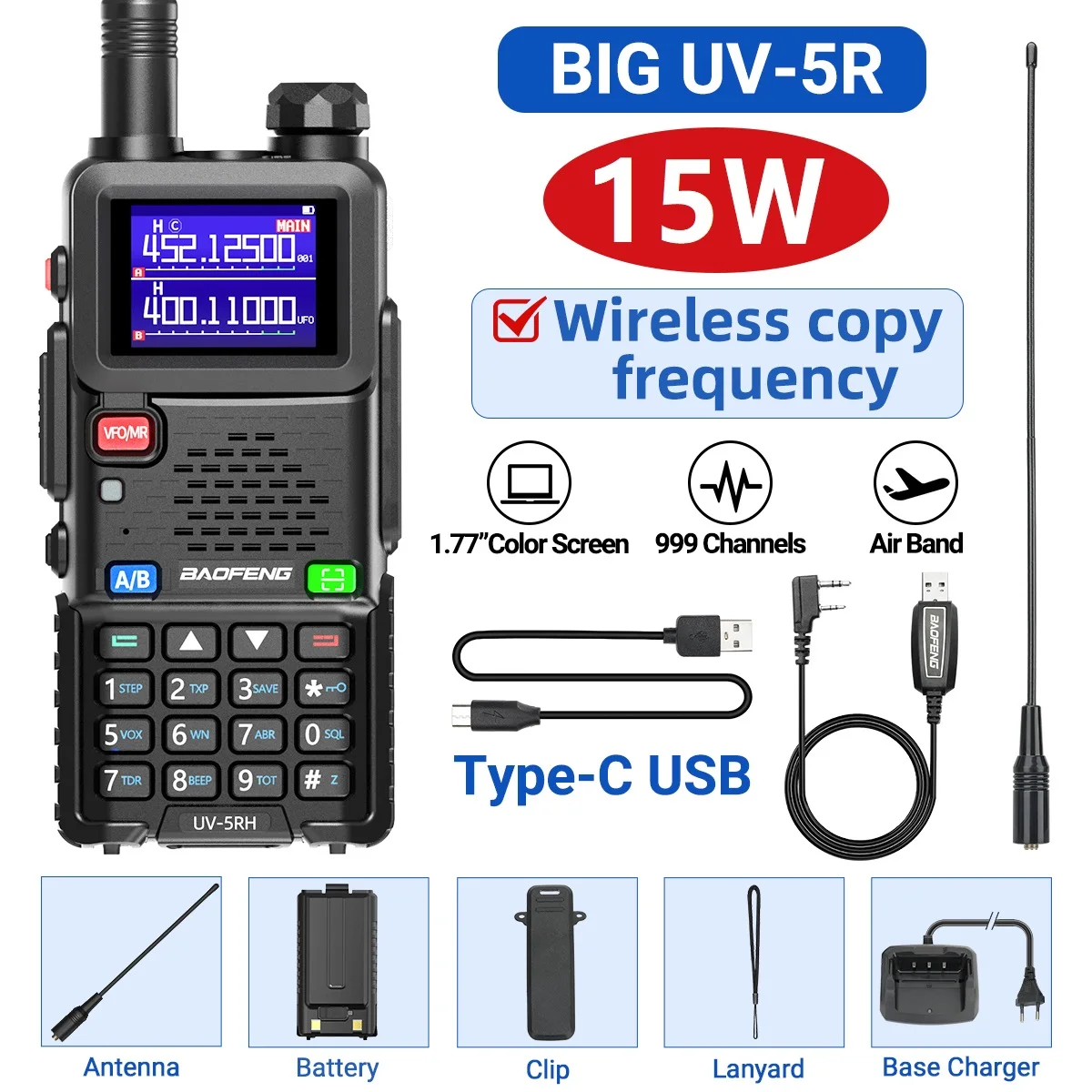- Equipped with a 1.77-inch bright color LCD screen displaying frequency, signal strength, and settings, accompanied by intuitive keypad controls and quick access keys.