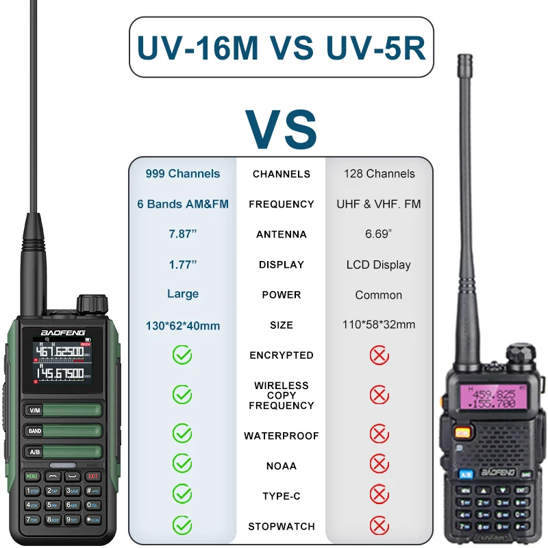 Keys features of the this Baofeng UV16M V2 walkie talkie