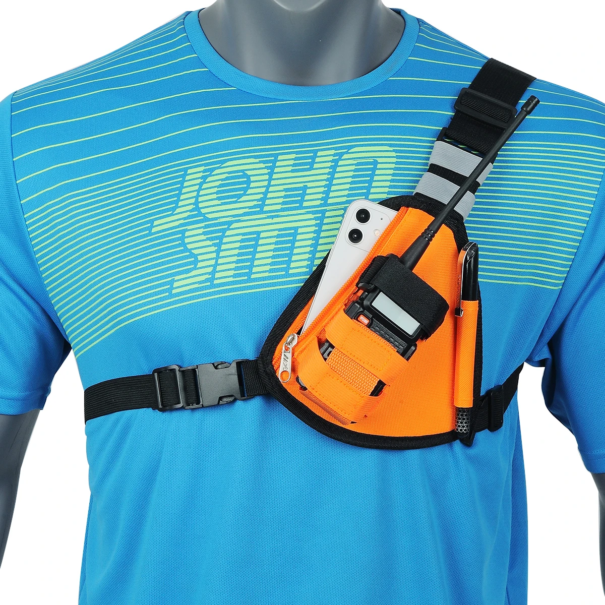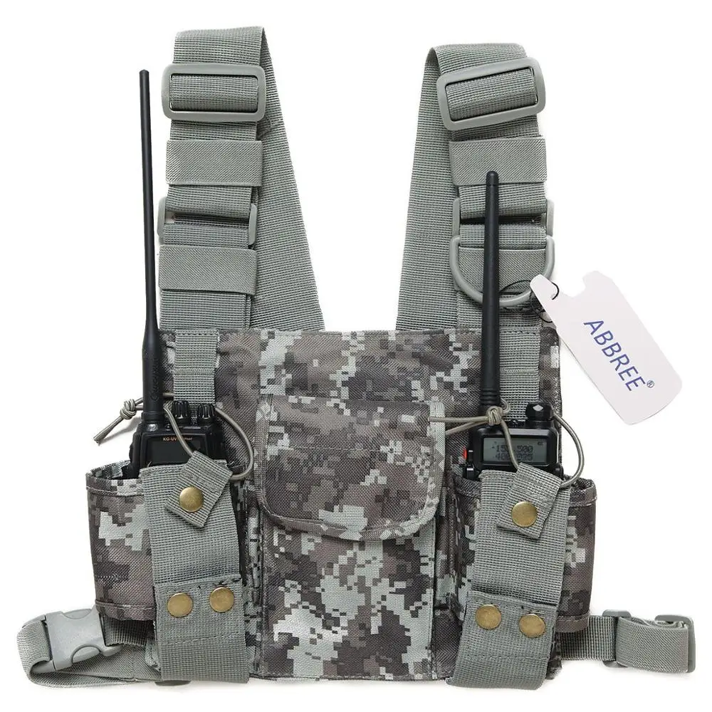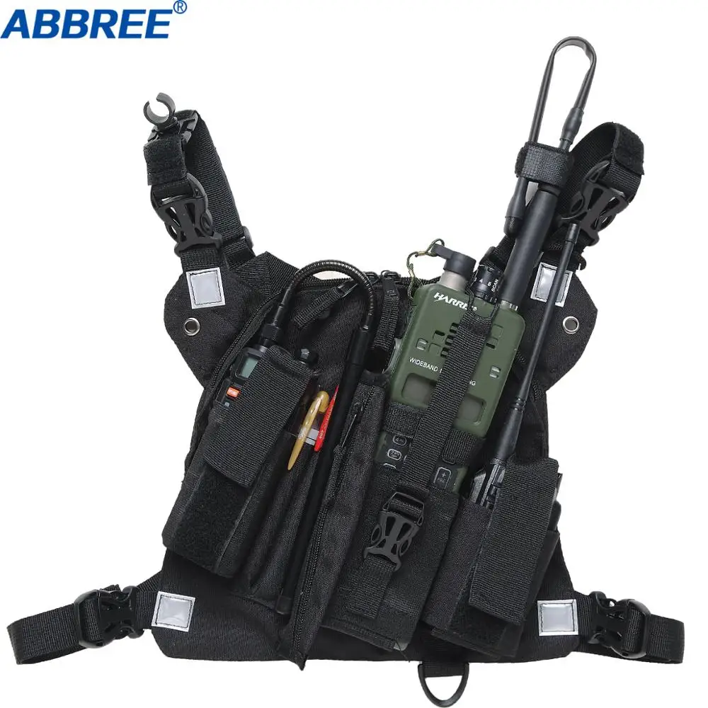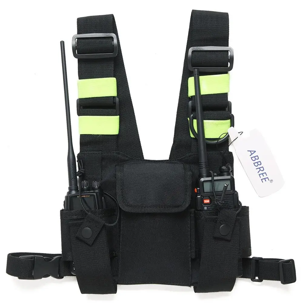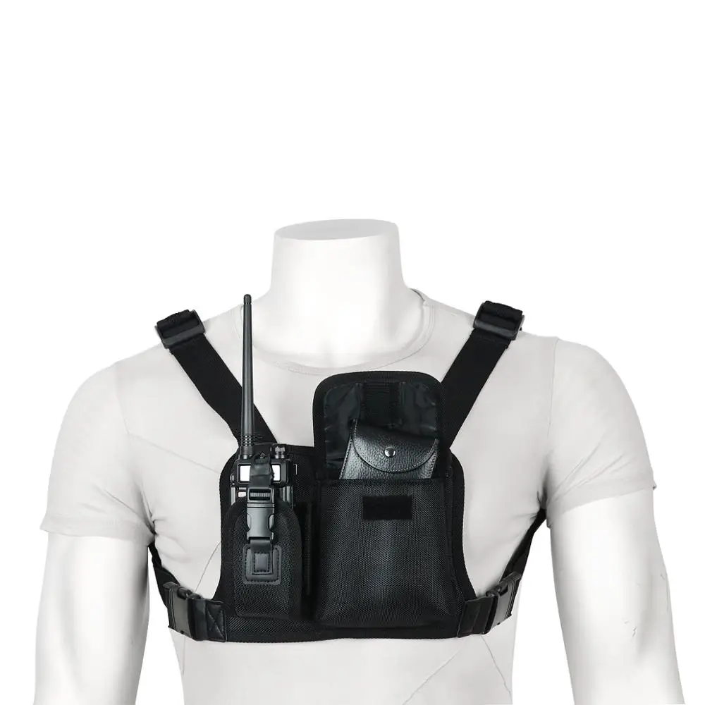The BAOFENG & ABBREE Radio Chest Harness Pocket Bag is designed for carrying various walkie talkie models like the UV-5R, UV-10R, UV-9R, and UV-S9. Made from durable nylon, this lightweight and wearable case features a telescopic adjustment belt, ensuring a comfortable fit for all sizes. It is ideal for professionals in police, military, medical, and security fields, offering a practical solution for hands-free communication. The sleek black design complements any uniform, and the bag is simple and easy to use, making it a must-have accessory for radio users on the go.