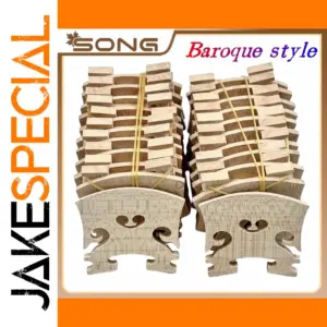 Immerse yourself in the timeless elegance of this set of 20 violin bridges crafted from pure natural maple wood. Designed for various violin sizes, including 4/4, 3/4, 2/4, 1/2, and 1/4, these bridges combine both aesthetic appeal and functional performance. The Baroque-inspired design features ornate curves and decorative cutouts, such as heart-shaped motifs at the bottom, adding a vintage charm to your instrument. The light-colored maple showcases beautiful wood grain patterns, emphasizing the high-quality craftsmanship. Perfect for both professional and amateur violinists, these bridges enhance sound projection and tonal clarity, making your violin sound richer and more vibrant. Whether replacing old bridges or customizing your instrument, this set offers a perfect blend of beauty and sound quality.