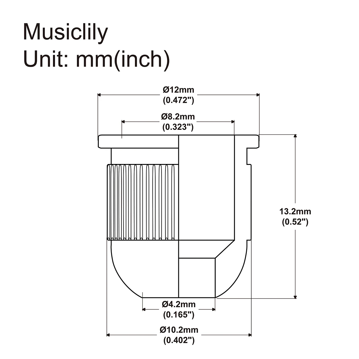 - Technical specs include a height of 13.2mm, small hole diameter of 4.2mm for strings, large hole of 8.2mm, and a required mounting hole of 10.2mm for precise fitment.