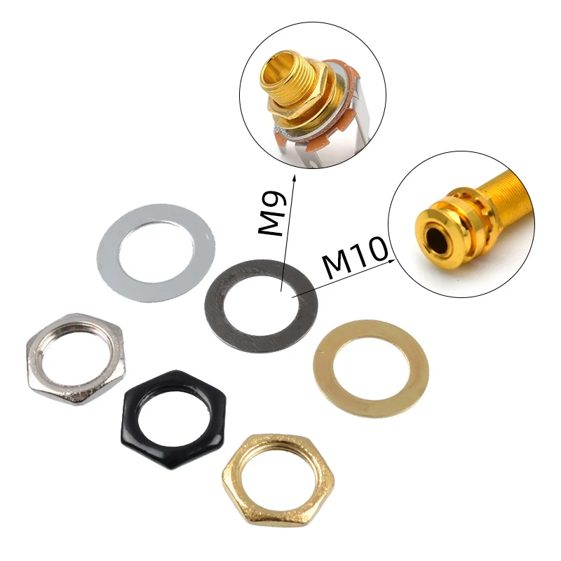 Enhance your bass guitar’s durability and aesthetic with this set of 12 high-quality metal nuts and washers, designed specifically for 9mm input/output jacks. Crafted from durable metal with a polished finish, the components feature an internal thread diameter of 9mm and a pitch of 0.75mm, ensuring secure and reliable fastening. Available in stylish colors—silver, gold, and black—this versatile set includes 12 hex nuts and 12 washers, providing a perfect fit for bass guitar sockets. Whether upgrading or repairing, these hardware pieces combine functionality with a sleek, professional look to complement your instrument’s design.