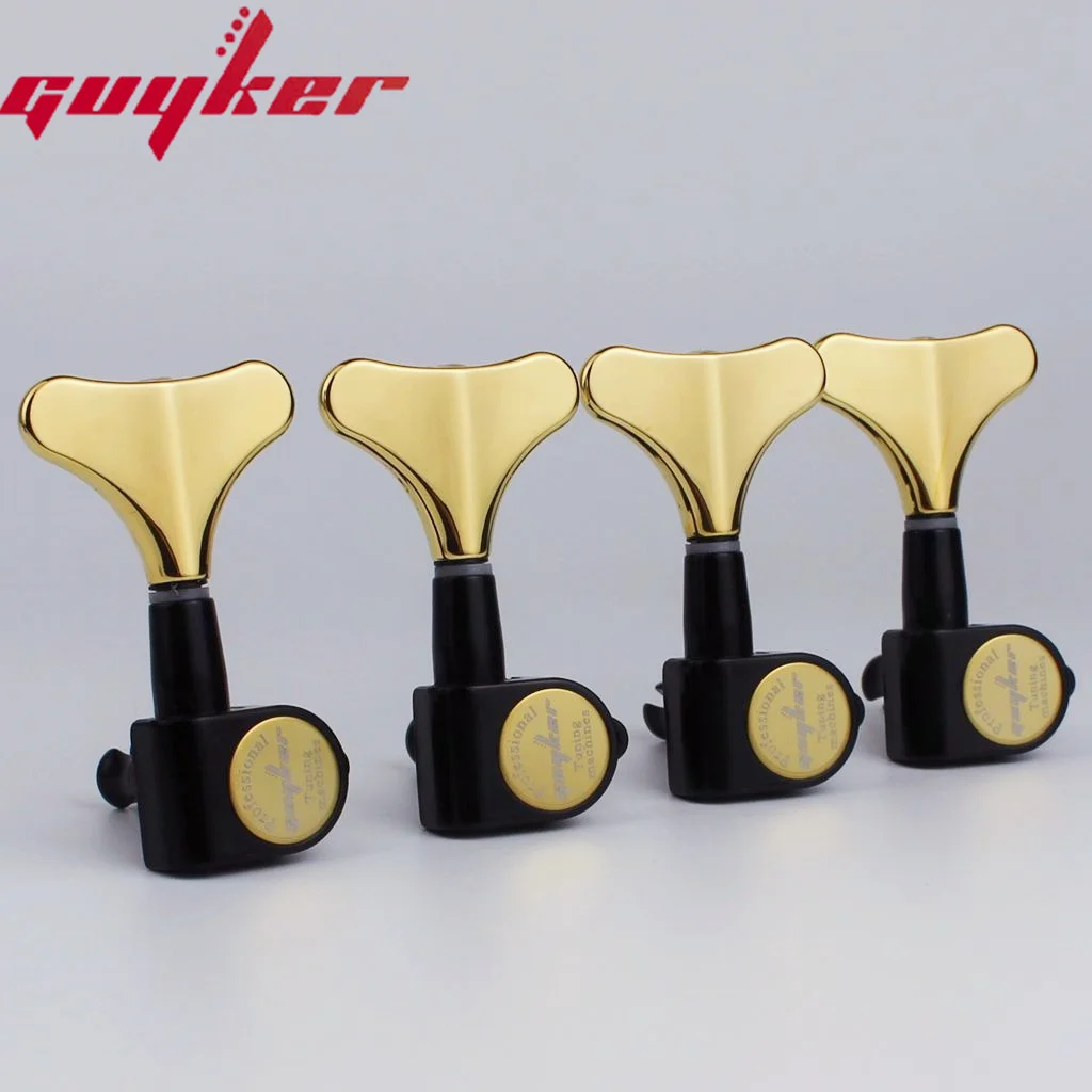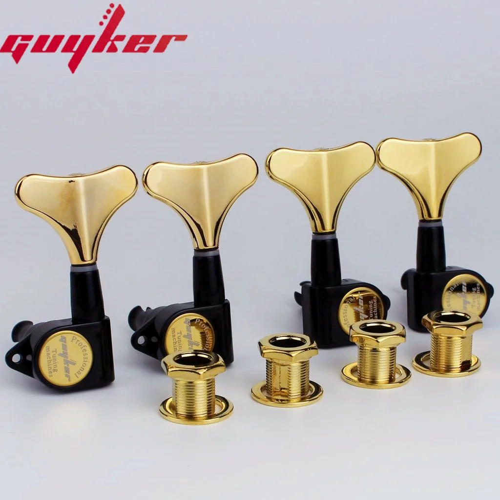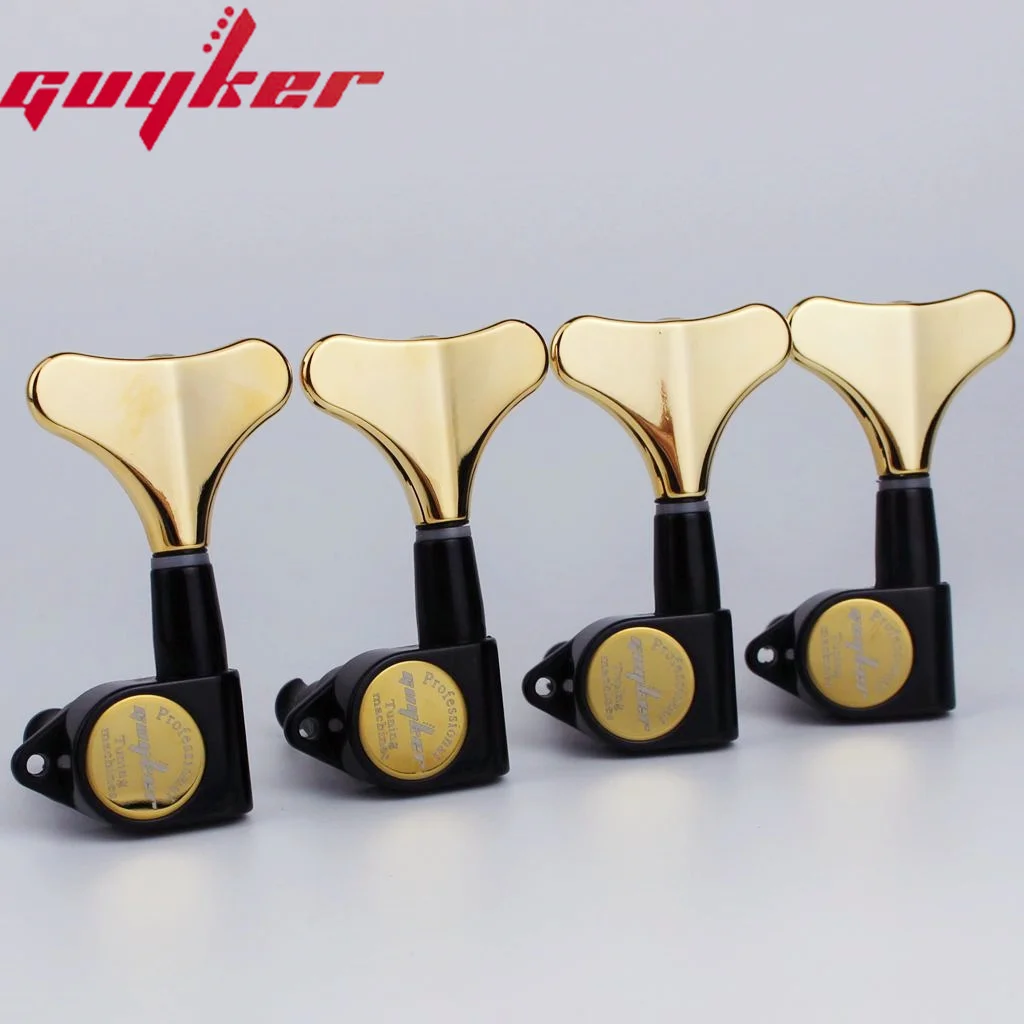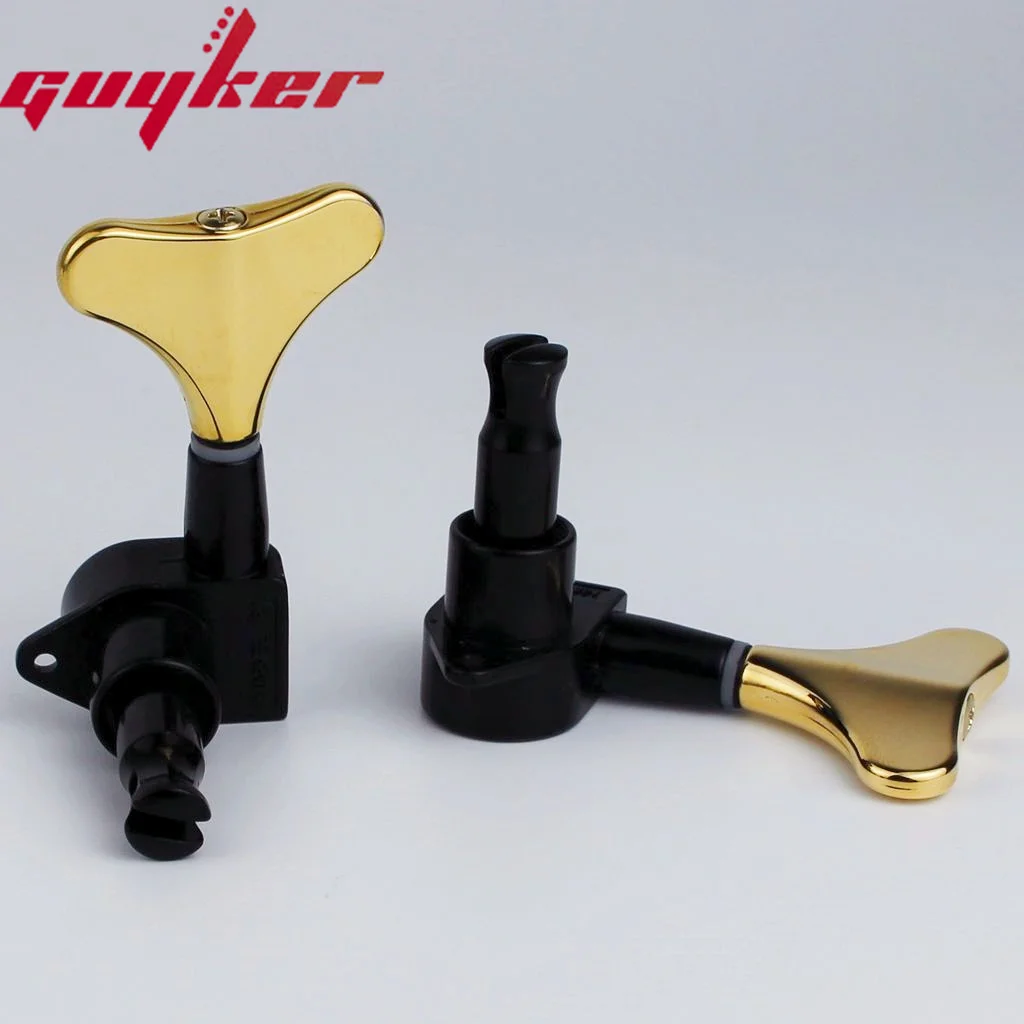 Experience a sleek upgrade for your bass guitar with these high-quality headstock sealed tuners. Crafted from durable metal, they combine modern aesthetics with reliable performance. The striking black bodies are complemented by shiny gold-colored adjustment knobs, giving your instrument a luxurious and sophisticated look. The large, trapezoidal tuning keys are polished for a smooth feel, ensuring precise tuning adjustments every time. Their compact, cylindrical design blends seamlessly into any bass headstock, enhancing both functionality and visual appeal. Choose from multiple color options—2R2L, 3R2L, 4L, and 4R—to match your style. Install with ease and enjoy a professional upgrade that stands out for durability, precision, and elegance with each tune.